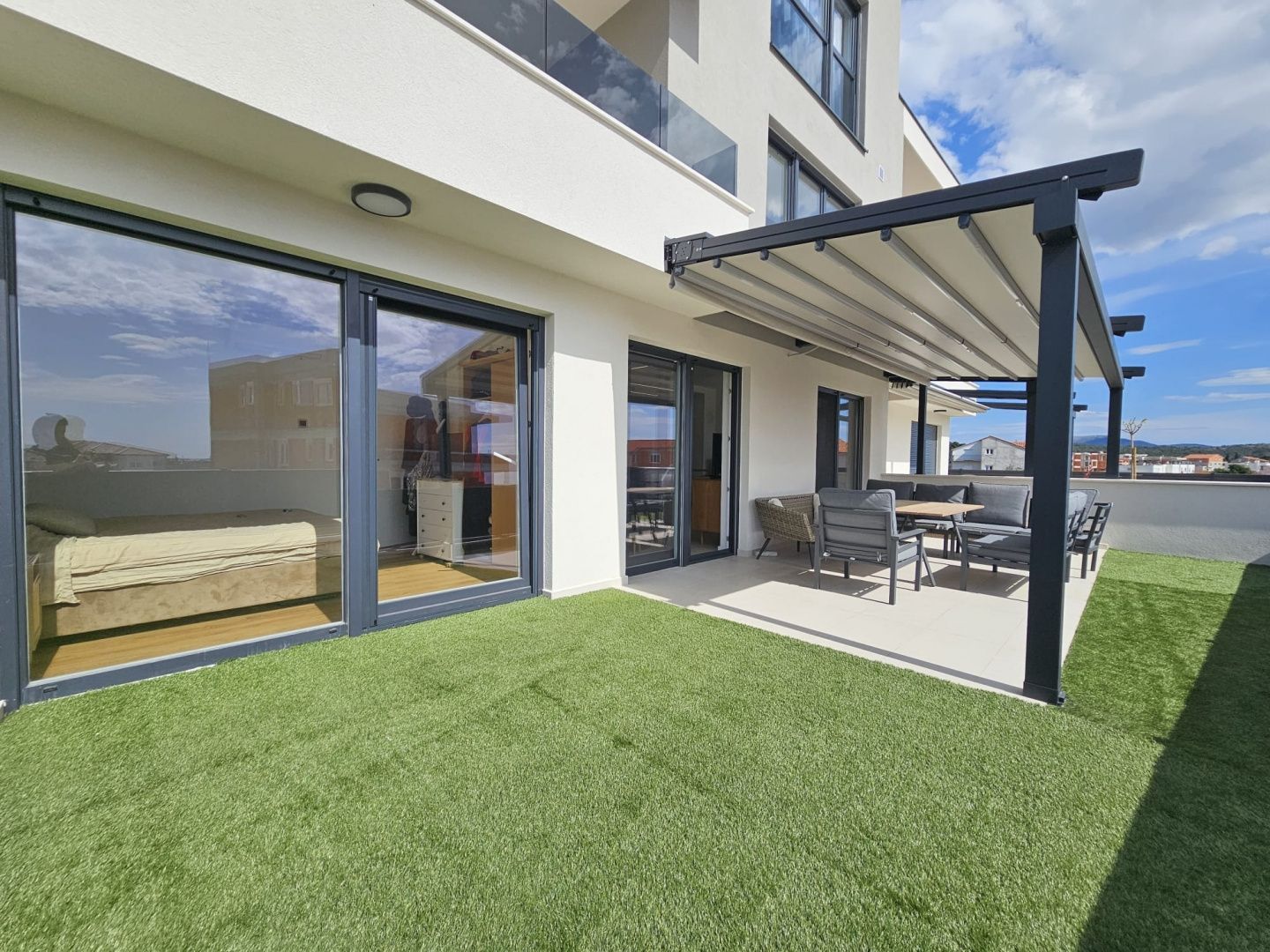 ŠIBENIK, BRODARICA – NEUBAU, Luxuriös möblierte Dreizimmerwohnung im Erdgeschoss mit Innenhof