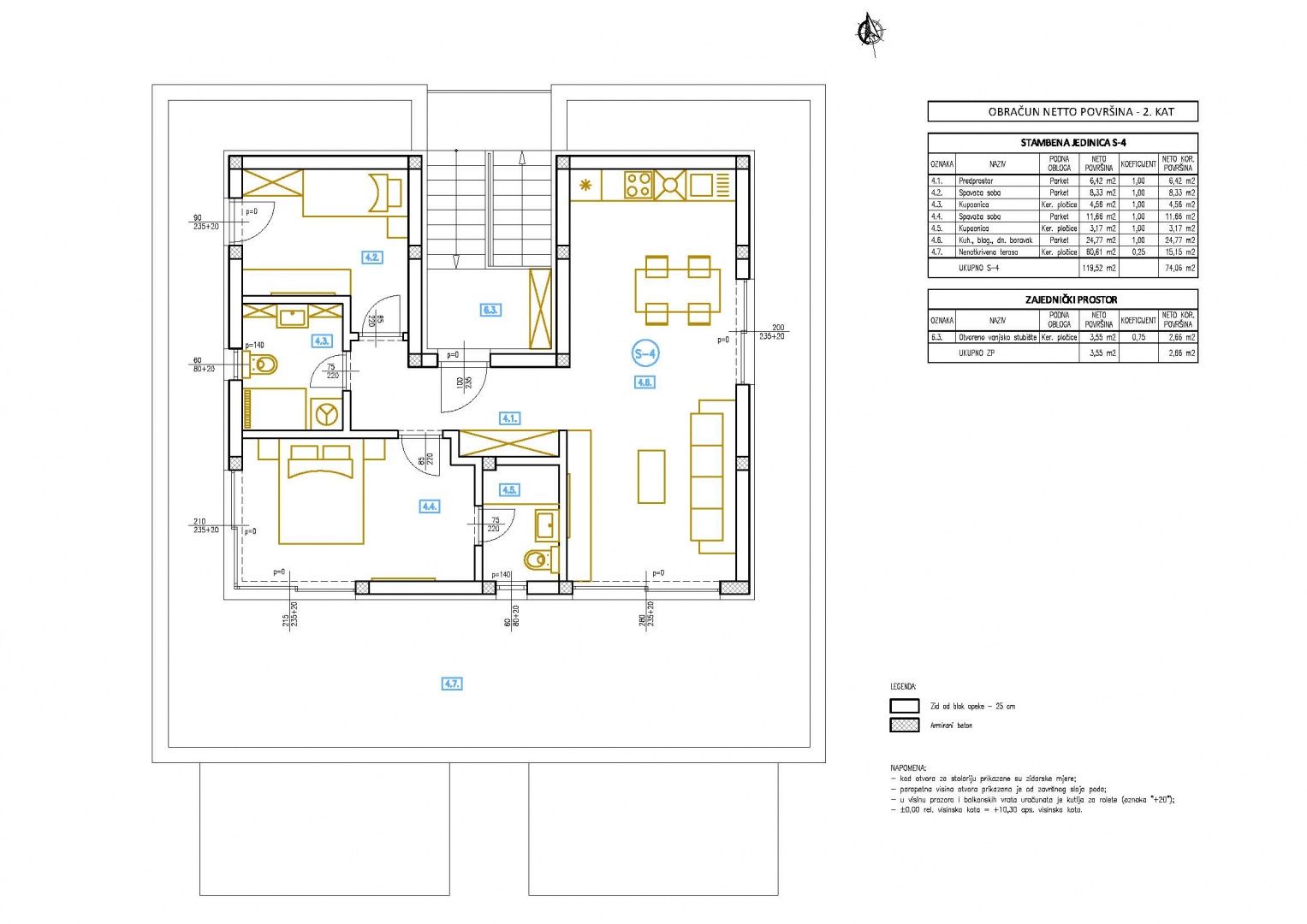 ŠIBENIK, BRODARICA – Sonnige Wohnung mit Terrasse und Garage, 270 m vom Meer entfernt In der derzeit begehrtesten Lage von Šibenik – Brodarica – nur 270 m vom Meer entfernt und in unmittelbarer Nähe zu allen Annehmlichkeiten, entsteht ein neues Projekt, ideal für Familien und Kapitalanleger. Das Projekt besteht aus zwei kleineren Gebäuden mit insgesamt 8 Wohnungen (jeweils 4 Wohnungen), verteilt auf Erdgeschoss und zwei Obergeschosse. Dies bedeutet weniger Nachbarn und mehr Privatsphäre. Im Erdgeschoss befinden sich Garagen und eine Wohnung, im ersten Obergeschoss zwei Wohnungen und im zweiten Obergeschoss Penthäuser mit Meerblick. Jede Wohnung verfügt über eine eigene Garage und einen zusätzlichen Außenstellplatz (Wohnung S3 hat keinen Außenstellplatz). Dies ist im Preis inbegriffen und heutzutage eine Seltenheit auf dem lokalen Markt. Kleinere Projekte erfreuen sich zunehmender Beliebtheit, da Käufer Ruhe, eine überschaubare Anzahl von Nachbarn und einen geringeren Wartungsaufwand schätzen. Die Kombination aus Garage, Außenstellplatz und der Nähe zum Meer (nur wenige Gehminuten entfernt) bietet hier einen zusätzlichen Mehrwert. WOHNUNGSBESCHREIBUNG Wohnung S2 (GEBÄUDE OST) befindet sich im 1. Obergeschoss und verfügt über eine Gesamtfläche von 77,72 m², wovon 61,21 m² reiner Wohnraum sind. Die Südwestausrichtung sorgt für viel Tageslicht. Der Eingangsbereich trennt Wohn- und Schlafbereich und schafft so eine klare und funktionale Raumaufteilung. Wohnzimmer, Küche und Essbereich bilden einen offenen, nach Süden ausgerichteten Wohnbereich, der eine angenehme, helle Atmosphäre mit direktem Zugang zur Terrasse für entspannte Stunden im Freien bietet. Funktionale Raumaufteilung mit klar getrennten Wohn- und Schlafbereichen sorgt für Ruhe und optimale Raumausnutzung ohne unnötige Durchgänge. GRUNDRISS • Offener Wohn-/Essbereich mit Küche • Zugang zur Terrasse (10,87 m²) • 2 Schlafzimmer • Badezimmer • Flur zwischen Wohn- und Schlafbereich BAUQUALITÄT UND AUSSTATTUNG • 10 cm Wärmedämmfassade – für mehr Wohnkomfort und niedrigere Heizkosten • Fußbodenheizung in allen Räumen außer den Schlafzimmern • Klimaanlage in allen Räumen • Kunststoffbeschichtete Aluminiumfenster mit Dreifachverglasung – für bessere Wärmedämmung und Ruhe • Elektrische Rollläden und Moskitonetze – praktischer Schutz vor Insekten ohne zusätzliche Kosten • Kombination aus Keramik und Parkett – langlebig und behaglich LAGE Brodarica zählt zu den begehrtesten Wohnlagen in der Region Šibenik, gerade wegen der hohen Lebensqualität und der Nähe zum Meer. Alle wichtigen Einrichtungen sind in wenigen Minuten erreichbar, und die nur 270 Meter zum Meer ermöglichen einen schnellen und bequemen Strandbesuch ohne Auto. Die Nähe zu Šibenik bietet schnellen Zugang zu allen städtischen Annehmlichkeiten, während die Lage selbst Funktionalität und gute Verkehrsanbindung gewährleistet. • Meer: 270 m • Geschäft: 400 m • Schule/Kindergarten: 1,2 km • Zentrum Šibenik: 7,7 km • Flughafen Split: 55,5 km • Flughafen Zadar: 78,5 km • Nationalpark Krka: 17 km • Autobahn: 11 km Die Lage an der Hauptstraße erleichtert die tägliche Fortbewegung und vermeidet enge Gassen, was ein deutlicher Vorteil gegenüber vergleichbaren Lagen ist. Der Verkäufer ist eine juristische Person, und die Mehrwertsteuer ist im Preis enthalten, sodass der Käufer keine 3%ige Grundsteuer zahlen muss. FÜR WEN IST DIESE IMMOBILIE IDEAL? Diese Immobilie ist eine hervorragende Wahl für Käufer, die das Leben in Meeresnähe mit ganzjähriger Funktionalität und der Sicherheit einer Garage sowie zusätzlichen Parkplätzen verbinden möchten. Aufgrund der Nähe zum Meer und der hohen Nachfrage nach dieser Art von Immobilien stellt sie auch eine logische Wahl als langfristige Kapitalanlage dar. Wohnungen mit Garage in dieser Lage sind selten auf dem Markt – kontaktieren Sie uns für weitere Informationen oder einen Besichtigungstermin.