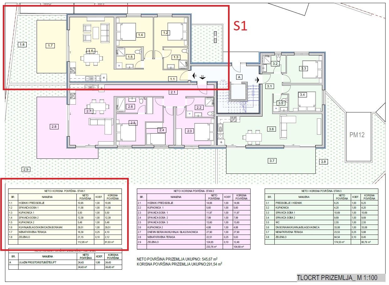 ŠIBENIK, SRIMA – Erdgeschosswohnung in einem Neubau in attraktiver Lage DUX präsentiert die moderne Wohnung S1 im Erdgeschoss eines Neubaus mit insgesamt acht Wohneinheiten im schönen Srima bei Šibenik, nur 70 Meter vom Meer und Strand entfernt, in zweiter Reihe vom Meer. Diese Immobilie bietet die ideale Kombination aus hochwertiger Bauweise, modernem Design und exzellenter Lage – die perfekte Wahl für ein ruhiges Familienleben, einen erholsamen Urlaub oder als Kapitalanlage mit hervorragendem Vermietungspotenzial. Wohnung S1 verfügt über zwei Schlafzimmer, zwei Badezimmer und einen großzügigen Wohnbereich, der Küche, Esszimmer und Wohnzimmer miteinander verbindet und Zugang zu einer unüberdachten Terrasse und einem Garten bietet. Das Hauptschlafzimmer verfügt über ein eigenes Badezimmer, während das zweite Schlafzimmer ein separates Badezimmer nutzt. Dank der Westausrichtung ist die Wohnung den ganzen Tag über lichtdurchflutet und bietet ein angenehmes Ambiente. Die Nettofläche der Wohnung beträgt 112,95 m², die nutzbare Wohnfläche 81,83 m². Zur Wohnung gehört außerdem ein Parkplatz. Grundriss (Nettofläche): • Flur und Eingangsbereich: 10,95 m² • Schlafzimmer 1 (Hauptschlafzimmer mit Bad en suite): 11,58 m² • Badezimmer 1 (en suite): 5,50 m² • Schlafzimmer 2: 12,39 m² • Badezimmer 2: 5,48 m² • Küche, Ess- und Wohnzimmer: 29,51 m² • Terrasse: 16,39 m² • Garten: 21,15 m² Gesamtnettofläche: 112,95 m² Nutzfläche: 81,83 m² Ausstattung: • Entfernung zum Meer und Strand: 70 m / 1 Gehminute • Erdgeschoss mit direktem Zugang zu Terrasse und Garten • Zwei-Zimmer-Wohnung mit zwei Badezimmern • Hauptschlafzimmer mit eigenem Bad En-suite-Badezimmer • Außenfenster aus hochwertigen Aluminiumprofilen mit sechs Kammern und dreifach verglastem Glas mit hervorragender Energieeffizienz – Außenseite des Profils in Bronze, Innenseite in Weiß – elektrisch betriebene Rollläden und Insektenschutzgitter – Hebe-Schiebe-Wände, Beschläge und Griffe von namhaften Herstellern • Einbruch- und feuerfeste Eingangstüren eines renommierten Herstellers mit Zertifikat • Aufzug im Gebäude • Innentüren mit verdeckten Scharnieren und Magnetverschlüssen – Türrahmen und Zierleisten aus Massivholz • Terrassengeländer aus Glas, Typ Lamistal 2x1 cm • Wände und Decken verputzt und weiß gestrichen • Innenfensterbänke aus Plano-Stein, 3 cm stark, poliert und mit profilierten Kanten • Hochwertige Bodenbeläge und Fliesen in den Innenräumen und auf den Terrassen • Badezimmer deckenhoch gefliest • Fußbodenheizung in der gesamten Wohnung • Klimaanlage im Wohnzimmer (5,0 kW Inverter) und im Schlafzimmer (2,5-kW-Wechselrichter pro Zimmer) • Sanitärausstattung namhafter Hersteller (Kolpa-san, Hansgrohe), Unterputzspülkästen (Liv, Geberit), Duschwände und -rinnen aus Glas (Voxort oder vergleichbar) • Modulare Schalter und Steckdosen des Herstellers TEM in Weiß • Beleuchtung in Bädern und auf Terrassen: Deckenleuchten, in den übrigen Bereichen Steckdosen mit Glühbirne • Terrestrische und Satellitenantenne mit Anschlüssen in Wohnzimmer und Schlafzimmern • Renommiertes Bauunternehmen mit nachweislicher Erfolgsbilanz Dieses moderne Neubaugebäude in Srima bietet eine hervorragende Gelegenheit, eine luxuriöse Wohnung in Meeresnähe zu erwerben, die Komfort, Funktionalität und hochwertige Verarbeitung vereint. Srima ist ein ruhiges und charmantes Küstendorf, bekannt für seine langen Kiesstrände, das kristallklare Meer und die entspannte mediterrane Atmosphäre. Dank der Nähe zu Vodice und Šibenik bietet es die perfekte Balance zwischen Ruhe und allen Annehmlichkeiten für ein komfortables Leben. Für weitere Informationen und Besichtigungstermine kontaktieren Sie uns bitte.