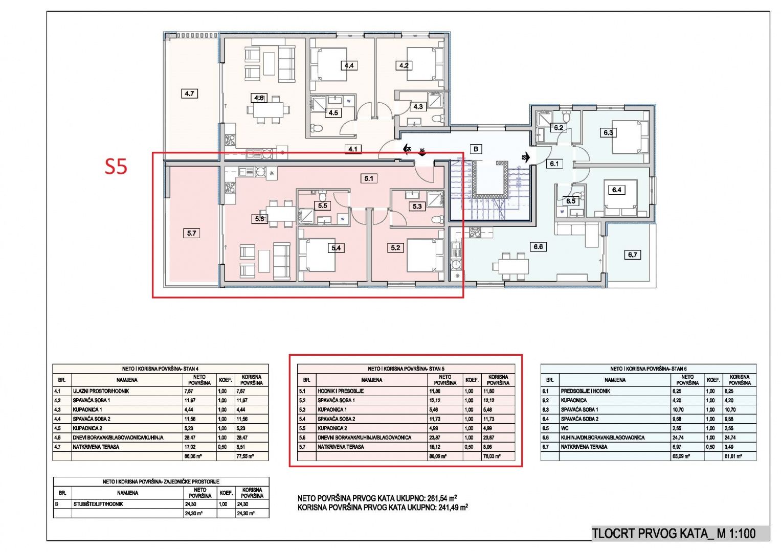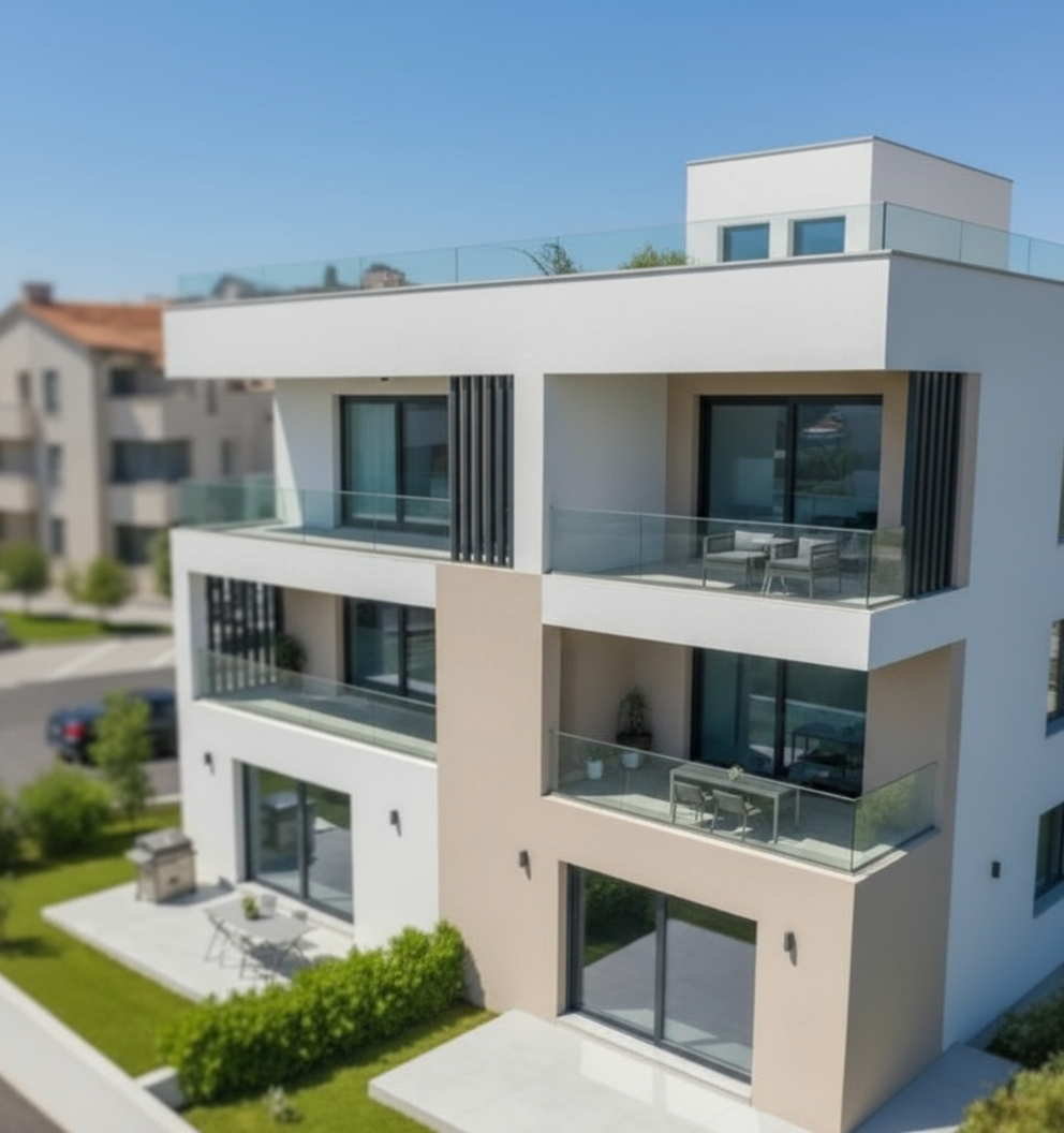 ŠIBENIK, SRIMA – Modernes 2-Zimmer-Apartment mit überdachter Terrasse und Meerblick, 70 m vom Strand entfernt, in einem Neubau mit Aufzug DUX präsentiert das elegante Apartment S5 im ersten Stock eines modernen Neubaus mit insgesamt acht Wohneinheiten in äußerst attraktiver Lage in Srima, nur 70 Meter vom Meer und Strand entfernt, in zweiter Reihe vom Meer. Diese Immobilie vereint hochwertige Bauweise, modernes Design und eine prestigeträchtige Lage – die ideale Wahl für ein ruhiges Familienleben, einen erholsamen Urlaub oder als Kapitalanlage mit exzellentem Vermietungspotenzial. Apartment S5 bietet einen funktionalen und modernen Grundriss mit zwei Schlafzimmern, zwei Badezimmern und einem großzügigen, offenen Wohnbereich. Eines der Schlafzimmer ist ein Hauptschlafzimmer mit eigenem Bad. Vom Wohn- und Esszimmer aus gelangt man auf eine 16,12 m² große, überdachte Terrasse, die zum Entspannen und Genießen des mediterranen Flairs einlädt. Das Apartment ist nach Südwesten ausgerichtet, was für viel Tageslicht und eine angenehme Atmosphäre den ganzen Tag über sorgt. Das Gebäude verfügt über einen Aufzug, und zur Wohnung gehört ein Parkplatz. Die Nettofläche der Wohnung beträgt 86,09 m², die nutzbare Wohnfläche 78,03 m². Grundriss (Nettofläche): • Eingangsbereich/Flur: 11,80 m² • Schlafzimmer 1 (Hauptschlafzimmer mit Bad en suite): 12,12 m² • Badezimmer 1 (en suite): 5,46 m² • Schlafzimmer 2: 11,73 m² • Badezimmer 2: 4,99 m² • Wohn-, Ess- und Küchenbereich: 23,87 m² • Überdachte Terrasse: 16,12 m² Gesamtnettofläche: 86,09 m² Nutzfläche: 78,03 m² Ausstattung: • Entfernung zum Meer und Strand: 70 m / 1 Gehminute • Erster Stock mit teilweisem Meerblick • Aufzug im Gebäude • Zwei-Zimmer-Wohnung mit zwei Badezimmern • Hauptschlafzimmer mit eigenem Bad en suite • Überdachte Terrasse in Südwestlage • Ein Parkplatz im Preis inbegriffen • Außenfenster und -türen aus hochwertigen Aluminiumprofilen mit sechs Kammern und dreifach verglastem Glas mit hervorragender Energieeffizienz – Außenseite der Profile in Bronze, Innenseite in Weiß – elektrisch betriebene Rollläden und Insektenschutzgitter – Hebe-Schiebe-Wände, Beschläge und Griffe von namhaften Herstellern • Einbruch- und feuerfeste Eingangstüren eines renommierten Herstellers mit Zertifikat • Innentüren mit verdeckten Scharnieren und Magnetverschlüssen – Türrahmen und Zierleisten aus Massivholz • Terrassengeländer aus Glas, Typ Lamistal 2x1 cm • Wände und Decken verputzt und weiß gestrichen • Fensterbänke aus poliertem Plano-Stein, 3 cm stark, mit profilierten Kanten • Hochwertige Bodenbeläge und Fliesen in den Innenräumen und auf den Terrassen • Badezimmer deckenhoch gefliest • Fußbodenheizung in der gesamten Wohnung • Klimaanlage im Wohnzimmer (5,0 kW Inverter) In den Schlafzimmern (2,5-kW-Wechselrichter pro Zimmer) • Sanitärausstattung namhafter Hersteller (Kolpa-san, Hansgrohe) • Unterputzspülkästen (Liv, Geberit), Glasduschwände und -rinnen (Voxort oder vergleichbar) • Modulare Schalter und Steckdosen des Herstellers TEM in Weiß • Beleuchtung in den Bädern und auf den Terrassen: Deckenleuchten, in den übrigen Bereichen Lampenfassungen • Terrestrische und Satellitenantenne mit Anschlüssen im Wohnzimmer und in den Schlafzimmern • Renommiertes Bauunternehmen mit nachweislicher Erfolgsbilanz Dieses moderne Neubaugebäude in Srima bietet die perfekte Balance aus Komfort, Funktionalität und Luxus in unmittelbarer Nähe zum Meer und Strand. Eine hervorragende Gelegenheit für alle, die eine hochwertige Wohnung mit Meerblick in einer ruhigen, aber äußerst begehrten Umgebung suchen. Srima ist ein ruhiger und charmanter Badeort, bekannt für seine langen Kiesstrände, das kristallklare Wasser und die entspannte mediterrane Atmosphäre. Dank der Nähe zu Vodice und Šibenik bietet es die perfekte Balance zwischen Ruhe und allen Annehmlichkeiten für ein komfortables Leben. Für weitere Informationen und Besichtigungen kontaktieren Sie uns bitte.