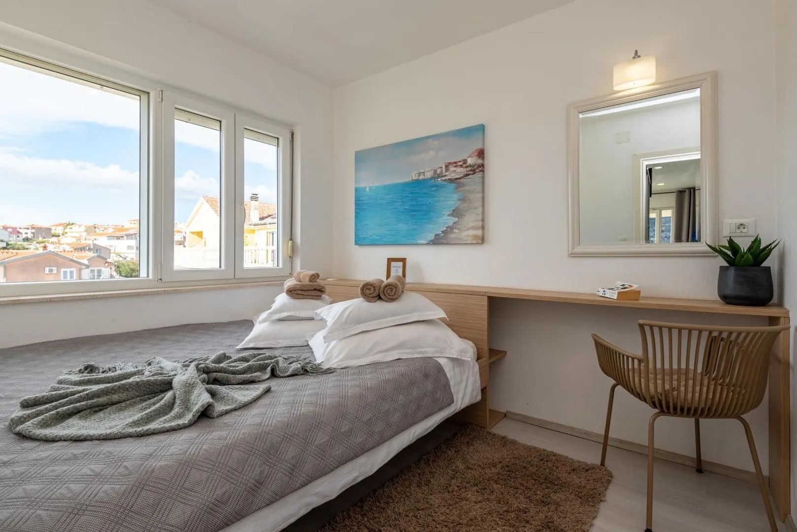 ŠIBENIK UND UMGEBUNG, GREBAŠTICA – Mini-Hotel in erster Strandreihe mit Pool und Restaurant Dieses Mini-Hotel in erster Strandreihe mit Pool und Restaurant befindet sich im Herzen des charmanten dalmatinischen Städtchens Šibenik. Bekannt für seine ruhige Atmosphäre, das kristallklare Meer und die gepflegten Strände, ist es ein äußerst attraktives Reiseziel für Urlauber. Die Nähe zu Šibenik, der UNESCO-geschützten Kathedrale des Heiligen Jakobus und dem Nationalpark Krka steigert die Attraktivität dieser Lage zusätzlich und sorgt für ganzjährige Nachfrage. Das beeindruckende Anwesen mit einer Gesamtfläche von 534 m² erstreckt sich über drei Etagen und ist ein voll ausgestattetes Ferienhotel, das komplett möbliert und eingerichtet verkauft wird. Der Betrieb kann ohne weitere Investitionen aufgenommen werden. Im Erdgeschoss befinden sich ein Restaurant mit Nebenräumen und ein zusätzlicher Abstellraum. Direkt am Strand lädt eine Bar mit Terrasse zum Verweilen ein und bietet Gästen ein besonderes Erlebnis sowie zusätzliche Einnahmen. Das Hotel bietet modern eingerichtete Apartments in verschiedenen Größen, darunter zwei Studios mit ca. 30 m², ein geräumiges Superior-Studio mit 44 m² sowie zwei Apartments mit einem Schlafzimmer mit ca. 29 m². Im ersten Stock befindet sich zudem ein komfortables Apartment mit einem Schlafzimmer, einer großen Terrasse und herrlichem Meerblick. Alle Unterkünfte sind hell und modern gestaltet und verfügen über einen Balkon, eine voll ausgestattete Küche mit Essbereich, ein Badezimmer und einen Wohnbereich. Die meisten bieten einen atemberaubenden Meerblick. Ein besonderes Highlight des Hotels ist die großzügige Dachterrasse mit Swimmingpool, Sonnenterrasse und Lounge-Bereich – ideal zum Entspannen mit Panoramablick auf das Meer und die umliegende Landschaft. Zusätzlichen Luxus und Exklusivität bietet das Hotel durch das Angebot an hochwertigem, preisgekröntem Olivenöl, das den Aufenthalt abrundet. Dank seiner außergewöhnlichen Lage direkt am Meer, des bereits etablierten Geschäftsbetriebs, der hochwertigen Ausstattung und zusätzlicher Annehmlichkeiten wie Restaurant, Strandbar und Swimmingpool bietet dieses Mini-Hotel eine seltene Gelegenheit für eine sichere und rentable Investition im Tourismus an einem der begehrtesten Standorte der dalmatinischen Küste. ***