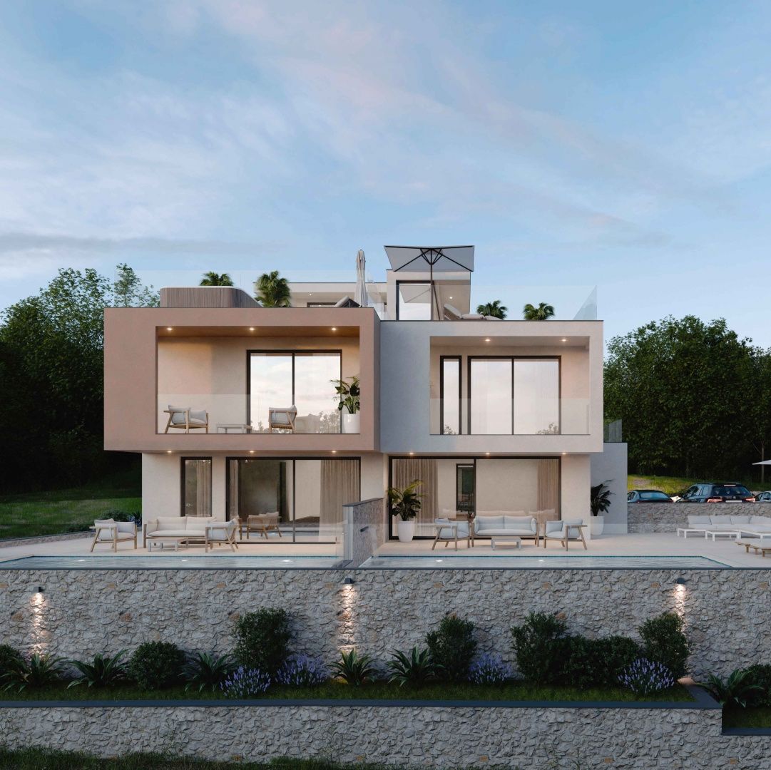ŠIBENIK, VODICE – MUPLEX-WOHNUNG mit Pool, Dachterrasse und Meerblick Wohnung S1 in einer luxuriösen MUPLEX-Wohnung in Vodice zu verkaufen. Diese Immobilie ist nicht für Käufer gedacht, die einen Kompromiss zwischen Preis und Lage suchen. Sie richtet sich an alle, denen Luxus, Meerblick und hochwertige Bauweise besonders wichtig sind. In Vodice entsteht ein modernes Duplex-Gebäude in exklusiver Lage mit zwei separaten Wohneinheiten. Jede Wohneinheit verfügt über einen eigenen Eingang, einen Pool, einen Garten und eine Dachterrasse. Die Wohneinheiten erstrecken sich über Erdgeschoss und Obergeschoss. Auf dem Dach befindet sich eine Dachterrasse mit Whirlpool und einem großzügigen Aufenthaltsbereich. Wohnung S1 umfasst Erdgeschoss, Obergeschoss und Dachgeschoss, verfügt über zwei Parkplätze, einen eigenen Garten und einen Pool und bietet eine Wohnfläche von 217,90 m². Im Erdgeschoss befinden sich ein Schlafzimmer, ein Badezimmer und ein großzügiges Wohnzimmer mit offener Küche und Essbereich. Eine große Glaswand verbindet den Innenraum mit Terrasse, Pool und Garten und bietet einen ständigen Blick aufs Meer. Eine Innentreppe führt in den ersten Stock mit drei Schlafzimmern. Das Hauptschlafzimmer verfügt über ein eigenes Badezimmer und Zugang zu einer privaten Terrasse. Zusätzlich gibt es ein weiteres Badezimmer und eine weitere Terrasse. Neben Erdgeschoss und erstem Stock bietet die Wohnung auch eine Dachterrasse, die als privater Bereich zum Entspannen, Sonnenbaden und für gesellige Abende mit Panoramablick auf das Meer konzipiert ist. Ein Whirlpool ist geplant, und ein Teil der Terrasse ist überdacht. Die Wohnung wird nach hohen Standards modernen Bauens ausgestattet. Dabei kommen hochwertige Materialien und technische Lösungen zum Einsatz, die auf langfristige Energieeffizienz und Komfort ausgelegt sind. Moderne Aluminiumfenster und -türen, Fußbodenheizung mit Wärmepumpen, Klimaanlage in allen Räumen sowie eine Kombination aus Parkett in den Wohnbereichen und Keramikfliesen in Bädern und Hauswirtschaftsräumen sind geplant. Neben Erdgeschoss und erstem Stock verfügt die Wohnung über eine Dachterrasse, die als privater Bereich zum Entspannen, Sonnenbaden und für gesellige Abende mit Panoramablick auf das Meer dient. Dieser Ausstattungsstandard garantiert hohen Wohnkomfort, geringe Instandhaltungskosten und einen stabilen Wert der Immobilie. Wenn Sie auf der Suche nach einem luxuriösen Neubau in einer seltenen Lage mit unverbaubarem Meerblick sind, sollten Sie sich diese Immobilie unbedingt ansehen. VODICE – Charmante Stadt mit pulsierendem Nachtleben und traumhaften Stränden Vodice ist ein beliebtes Touristenziel, 10 Kilometer nördlich von Šibenik. Vodice bietet erstklassige Hotels, wunderschöne Strände und ein abwechslungsreiches Nachtleben. In der Nähe befindet sich die kleine Insel Prvić. Die Stadt Split ist 69 km, Zadar 59 km und der nächste Flughafen 49 km entfernt. Für weitere Informationen oder zur Vereinbarung eines Besichtigungstermins kontaktieren Sie uns bitte.