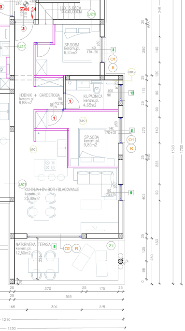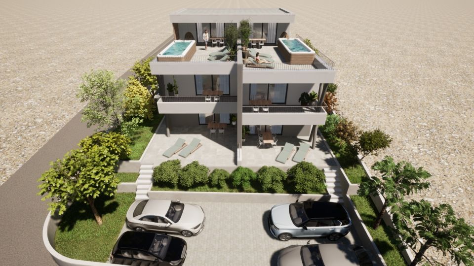 ŠIBENIK, VODICE – Wohnung im ersten Stock mit großer Terrasse Wir bieten Ihnen eine moderne Wohnung (S4) im ersten Stock eines kleinen Wohnhauses in Vodice. Die ruhige Lage ist ideal zum ganzjährigen Wohnen, für Ferienaufenthalte oder zur touristischen Vermietung. Das Wohnhaus umfasst insgesamt vier Wohnungen und garantiert somit Ruhe, Privatsphäre und eine angenehme Atmosphäre. Die Wohnung hat eine Wohnfläche von 99,57 m² und zeichnet sich durch einen funktionalen Grundriss und großzügige Außenbereiche aus. Erdgeschoss: – Offener Wohn-, Küchen- und Essbereich – Zwei Schlafzimmer – Badezimmer – Separates WC – Flur – Überdachte und offene Terrasse mit einer Gesamtfläche von 73,6 m², ideal zum Entspannen, Sonnenbaden und geselligen Beisammensein Zusätzlich zur Wohnung: – Zwei Parkplätze – Neubau und moderne Bauqualität – Meerblick – Entfernung zum Meer ca. 1.400 m Die Wohnung bietet ein hervorragendes Verhältnis von Wohnraum und großen Terrassen und ist somit eine ausgezeichnete Wahl für Familien oder als hochwertige Kapitalanlage zur touristischen Vermietung. VODICE – IDEALE LAGE ZUM WOHNEN UND URLAUB Vodice ist eine der bekanntesten dalmatinischen Städte und besticht durch seine gepflegten Strände, Promenaden, sein vielfältiges gastronomisches Angebot und alle Annehmlichkeiten für ein angenehmes Leben das ganze Jahr über. In der Nähe befinden sich: – Šibenik – historische Stadt und kulturelles Zentrum – Nationalpark Krka – Naturschönheit und Wasserfälle – Yachthafen, Geschäfte, Schulen, Kindergärten und weitere Einrichtungen Für weitere Informationen oder zur Vereinbarung eines Besichtigungstermins kontaktieren Sie uns bitte.