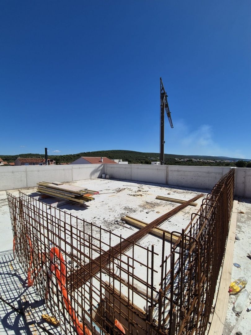 SUKOŠAN, ZADAR - S5 - Zweizimmerwohnung mit Dachterrasse Luxuswohnung in einem Neubau in Sukošan: Ihre sonnige Oase in der Nähe von Zadar Dies ist Ihre Gelegenheit, Eigentümer einer eleganten Wohnung im schönen Sukošan zu werden, nicht weit vom lebhaften Zadar entfernt. Wir präsentieren Ihnen diesen luxuriösen Neubau, der Komfort, Stil und einen guten Preis für Schnellentschlossene bietet! Grundlegende Informationen zur Wohnung: Standort: Sukošan, neben Zadar Inhalt: 2 Schlafzimmer, Wohnzimmer mit Küche und Esszimmer, zwei Badezimmer, Loggia, Dachterrasse, Garage, Abstellraum Zustand: Die Wohnungen befinden sich noch im Bau, Möglichkeit einer Verbesserung Kaufpreis vor Fertigstellung der Bauarbeiten. Ruhe und Komfort in Sukošan: Dieses Apartment liegt in einem ruhigen Teil von Sukošan und bietet eine perfekte Balance zwischen einer entspannten Atmosphäre und der Nähe zu allen notwendigen Annehmlichkeiten. Genießen Sie die Ruhe Ihres neuen Zuhauses, während alles, was Sie brauchen, immer zur Hand ist. Vorteile beim Kauf vor Baufertigstellung: Durch den Kauf einer Wohnung vor Baufertigstellung haben Sie die Möglichkeit, einen günstigeren Preis zu erzielen und die Inneneinrichtung Ihren eigenen Wünschen und Bedürfnissen entsprechend anzupassen. Nutzen Sie diese einmalige Gelegenheit und schaffen Sie sich ein auf Sie zugeschnittenes Zuhause. Nähe zu Zadar: Sukošan liegt nicht weit von der wunderschönen Stadt Zadar entfernt, die eine reiche Geschichte, Kultur und wunderschöne Strände bietet. Genießen Sie einen Spaziergang durch die Altstadt, erkunden Sie lokale Sehenswürdigkeiten und genießen Sie die farbenfrohe dalmatinische Gastronomie. Lassen Sie sich die Gelegenheit nicht entgehen: Jetzt ist der richtige Zeitpunkt, diese seltene Gelegenheit zu nutzen und sich Ihr neues Zuhause in Sukošan zu einem besseren Preis zu sichern. Kontaktieren Sie uns noch heute, um mehr zu erfahren und Ihre Tour zu buchen! Entdecken Sie Komfort und Luxus im Herzen von Sukošan – willkommen in Ihrem neuen Zuhause! Die Immobilie unterliegt dem Mehrwertsteuersystem (juristische Person) und der Käufer zahlt keine Immobilienumsatzsteuer. Voraussichtlicher Baufertigstellungstermin ist Frühjahr 2025.