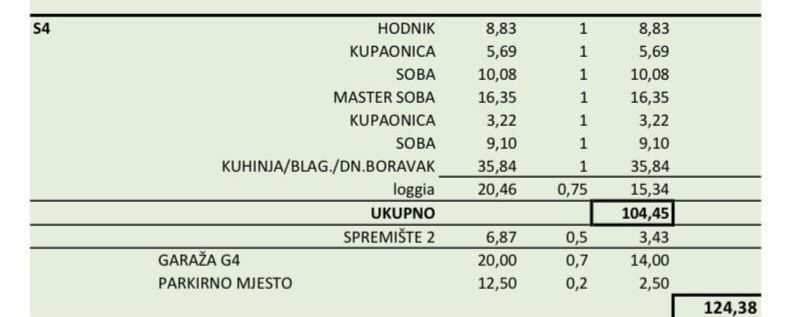 VELIKA GORICA – Hervorragende Gelegenheit in einem Neubau – 3-Zimmer-Wohnung mit Garage Diese geräumige und modern gestaltete 3-Zimmer-Wohnung befindet sich im zweiten Obergeschoss eines modernen Wohngebäudes in einer ruhigen und begehrten Lage in Velika Gorica. Das Gebäude liegt abseits der Hauptstraßen und bietet daher Ruhe, Privatsphäre und eine hohe Wohnqualität. Die Wohnung ist ideal für Familien, junge Paare oder als sichere Kapitalanlage zur langfristigen Vermietung. Das Gebäude befindet sich derzeit im Bau. Die geplante Fertigstellung und der Einzug sind für September 2026 vorgesehen. Neue Gebäudebezeichnung: Wohnung S4 – 2. Obergeschoss, Gebäude B Raumaufteilung Eingangsbereich/Flur – 8,83 m² Küche/Esszimmer/Wohnzimmer – 35,84 m² Hauptschlafzimmer – 16,35 m² Schlafzimmer 1 – 10,08 m² Schlafzimmer 2 – 9,10 m² Badezimmer 1 – 5,69 m² Badezimmer 2 – 3,22 m² Loggia – 20,46 m² Ausstattung: Abstellraum – 6,40 m² Garage – 20,00 m² Außenstellplatz – 12,50 m² Gesamtfläche der Wohnung inklusive Ausstattung: 124,38 m² Nutzfläche der Wohnung (ohne Ausstattung): 104,45 m² Das Gebäude ist in erdbebensicherer Stahlbetonbauweise auf einer schwimmenden Betondecke errichtet. Es zeichnet sich durch eine erstklassige Wärmedämmung (15 cm Steinwolle und EPS), PVC-Fenster und -Türen mit Dreifachverglasung, elektrische Rollläden, Sicherheitstüren und eine Video-Gegensprechanlage aus. Die Beheizung erfolgt über Wärmepumpen mit Fußbodenheizung, Klimaanlagen sind in allen Räumen installiert. Das Gebäude verfügt über einen Energieausweis der Klasse A+. Die Immobilie befindet sich in einer ruhigen, urbanen Straße und ist ideal für Familien. Kindergärten, Schulen, Geschäfte, öffentliche Verkehrsmittel und alle wichtigen Einrichtungen sind in unmittelbarer Nähe, während die Lage Ruhe und Privatsphäre bietet. Dank der steigenden Nachfrage nach hochwertigen Neubauten in Velika Gorica stellt diese Immobilie auch eine sichere Langzeitinvestition mit hervorragendem Vermietungspotenzial oder Wertsteigerungspotenzial dar.