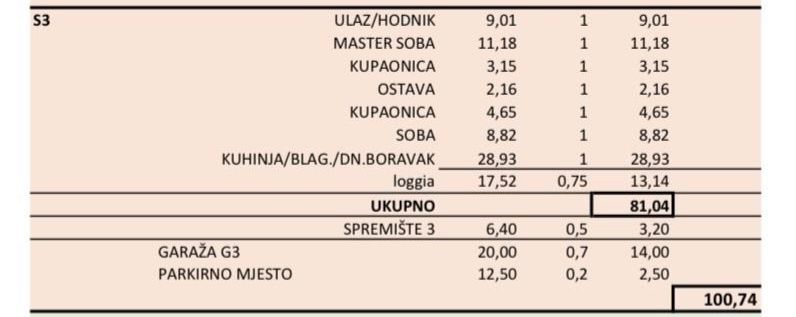 VELIKA GORICA – Modernes Zuhause mit Loggia, Garage und Stellplatz. Sofort einziehen! Wir bieten eine geräumige und modern gestaltete 2-Zimmer-Wohnung im zweiten Stock eines modernen Wohnhauses in ruhiger und begehrter Lage in Velika Gorica. Das Gebäude liegt abseits der Hauptstraßen und garantiert somit Ruhe, Privatsphäre und hohe Wohnqualität. Die Wohnung ist ideal für Familien, junge Paare oder als sichere Kapitalanlage zur langfristigen Vermietung. Das Gebäude befindet sich derzeit im Bau. Die geplante Fertigstellung und der Einzug sind für September 2026 vorgesehen. Neue Gebäudebezeichnung: Wohnung S3 – 2. Obergeschoss, Gebäude B Raumaufteilung Eingangsbereich/Flur – 9,01 m² Küche/Esszimmer/Wohnzimmer – 28,93 m² Hauptschlafzimmer – 11,18 m² Schlafzimmer – 8,82 m² Badezimmer 1 – 3,15 m² Badezimmer 2 – 4,65 m² Abstellraum – 2,16 m² Loggia – 17,52 m² Ausstattung der Wohnung: Abstellraum – 6,40 m² Garage – 20,00 m² Außenstellplatz – 12,50 m² Gesamtfläche der Wohnung mit Zubehör: 100,74 m² Netto-Nutzfläche der Wohnung (ohne Zubehör): 81,04 m² Das Gebäude wurde in Stahlbetonbauweise mit hoher Erdbebensicherheit auf einer schwimmenden Betonplatte errichtet. Es zeichnet sich durch eine erstklassige Wärmedämmung (15 cm Steinwolle und EPS), PVC-Fenster und -Türen mit Dreifachverglasung, elektrische Rollläden, Sicherheitstüren und eine Video-Gegensprechanlage aus. Die Beheizung erfolgt über Wärmepumpen mit Fußbodenheizung, Klimaanlagen sind in allen Räumen installiert. Das Gebäude verfügt über einen Energieausweis der Klasse A+. Die Immobilie befindet sich in einer ruhigen, urbanen Straße und ist ideal für Familien. Kindergärten, Schulen, Geschäfte, öffentliche Verkehrsmittel und alle wichtigen Einrichtungen sind in unmittelbarer Nähe, während die Lage Ruhe und Privatsphäre bietet. Dank der steigenden Nachfrage nach hochwertigen Neubauten in Velika Gorica stellt diese Immobilie auch eine sichere Langzeitinvestition mit hervorragendem Vermietungspotenzial oder Wertsteigerungspotenzial dar.