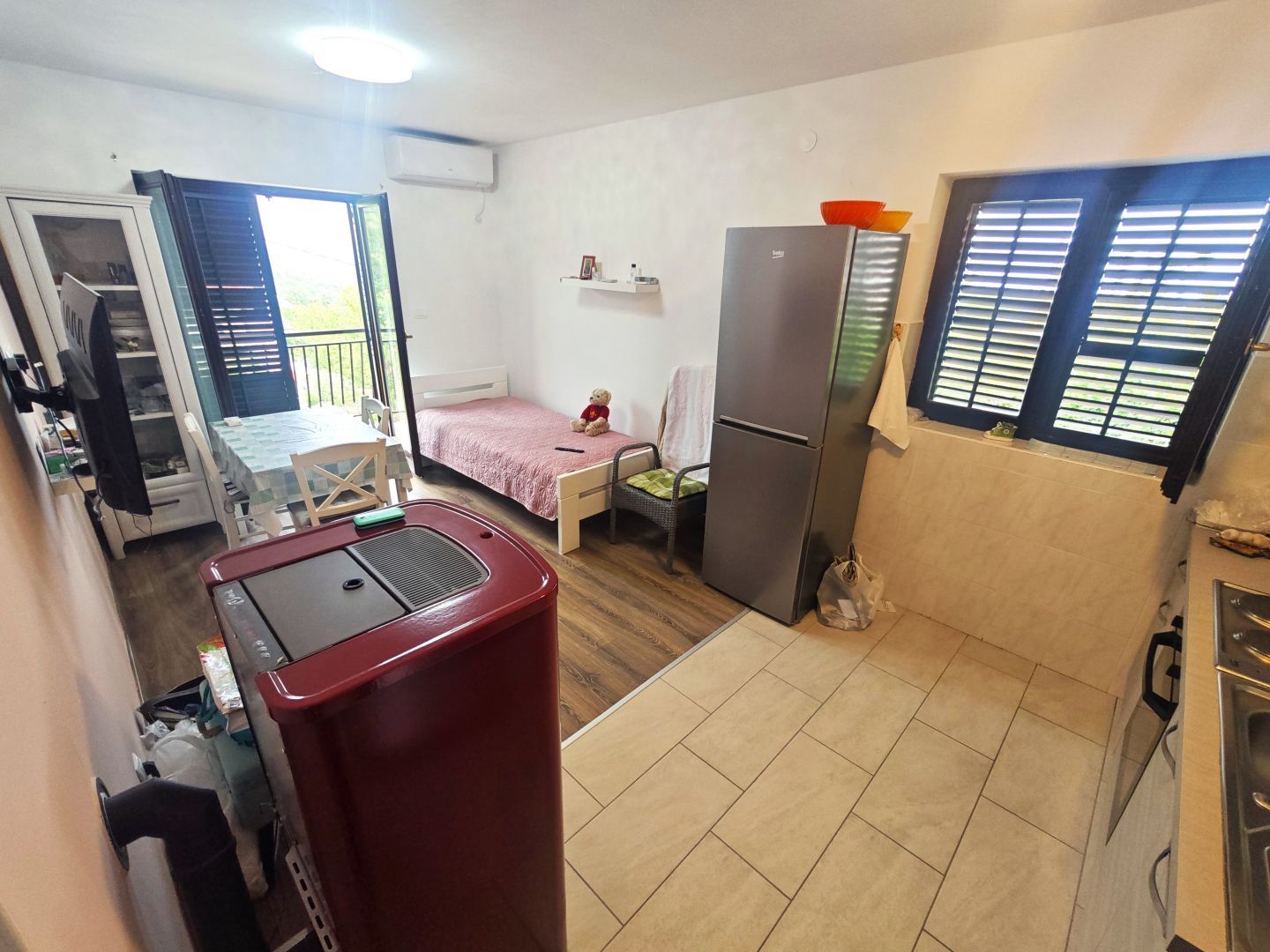 VEPRINAC - Freistehendes Haus mit großem Garten und Meerblick! Wir verkaufen ein tolles Einfamilienhaus in Veprinac mit Meerblick! Das Haus liegt in ruhiger Lage und ist von viel Grün umgeben. Es stellt eine großartige Gelegenheit für eine Familienimmobilie abseits des Stadtlärms oder ein Ferienhaus am Meer dar, da die Entfernung zum ersten Strand 3 km oder etwa 10 Minuten mit dem Auto beträgt. Das Haus liegt auf einem großen Grundstück von 850 m2 und besteht aus einem Erdgeschoss und einem Obergeschoss. Im Erdgeschoss gibt es eine Garage, eine Taverne und einen Raum für ein Studio-Apartment. Vor dem Haus befindet sich eine schöne Terrasse, die mit geringen Investitionen ein perfekter Ort für geselliges Beisammensein sein kann. Im ersten Stock befindet sich eine dekorierte Zweizimmerwohnung mit Balkon über die gesamte Etage. Die Fassade ist in gutem Zustand. Das Haus ist mit Pelletheizung und Klimaanlage ausgestattet. Ein zusätzliches Potenzial des Hauses ist die Möglichkeit, ein zusätzliches Stockwerk/Dachgeschoss und einen großen Garten zu errichten, in dem neben mehreren Parkplätzen und einem Garten problemlos ein Schwimmbad mit Liegewiese gebaut werden kann. Das Potenzial dieses Hauses ist nicht zu vernachlässigen, während die Hauptvorteile ein herausragender Meerblick, ein großzügiger Garten und eine ruhige Lage sind.