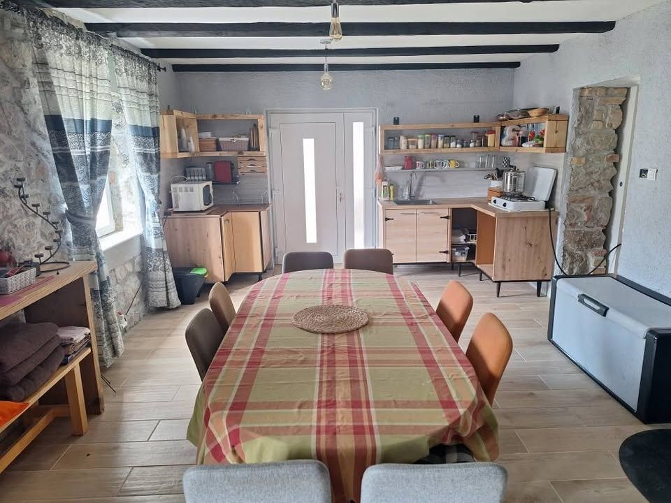 VRBOVSKO, möbliertes Haus mit schönem Garten Wir verkaufen ein möbliertes Haus mit einer Gesamtfläche von 150 m2, bestehend aus Erdgeschoss und Obergeschoss. Im Erdgeschoss gibt es einen Hobbyraum mit Küche, Bad und Holzschuppen. Im Obergeschoss befindet sich eine Wohnung mit zwei Zimmern, einer Küche mit Esszimmer und einem kleinen Wohnzimmer, die miteinander verbunden sind, und einem Badezimmer. Der Raum kann auch so organisiert werden, dass die obere Wohnung eine Einzimmerwohnung mit Wohnzimmer ist. Es ist auch möglich, sie mit einem hohen Dachboden zu verbinden, der ausgebaut werden muss, und es ist auch sehr einfach, das Erdgeschoss und das Obergeschoss mit einer Innentreppe zu verbinden. Das Haus ist größtenteils möbliert und eingerichtet. Es ist perfekt gelegen, da es sich innerhalb einer organisierten Siedlung befindet, mit einem sehr schönen Garten, der sich hinter dem Haus mit einem kleinen Gartenhaus befindet. Das Haus liegt 2 Minuten von der Autobahnausfahrt entfernt. Für alle Einzelheiten und um eine Besichtigung der Immobilie zu vereinbaren, kontaktieren Sie uns bitte.
