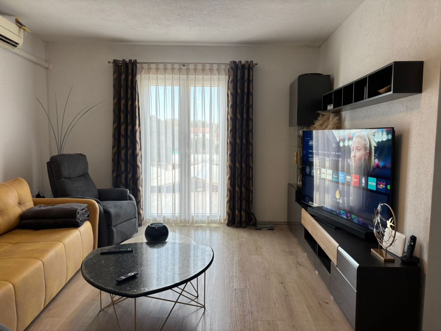 ISTRIEN, PREMANTURA - Schöne Wohnung in toller Lage! Dieses geräumige Apartment befindet sich im Zentrum von Premantura, in der Nähe aller Unterhaltungsmöglichkeiten, Geschäfte, Restaurants und Strände. Die Wohnung befindet sich im Erdgeschoss eines Wohn- und Geschäftshauses mit insgesamt 4 Wohnungen. Die Wohnung besteht aus einem breiten Flur, der zum Esszimmer mit Küche führt, dann gibt es ein geräumiges Wohnzimmer mit Terrasse, ein Schlafzimmer mit Einbauschrank, ein Badezimmer mit Dusche, eine Treppe neben dem Flur führt zur Galerie von 3 m2, die als dienen kann ein Büro oder Lager. Die Gesamtfläche der Wohnung beträgt 69 m2 und hat hohe Decken, was den Eindruck erweckt, dass die Wohnung noch größer ist. Die Wohnung wird mit Klimaanlage oder Strom beheizt. Möbliert verkauft. Das gesamte Gebäude verfügt über einen Energieausweis B.