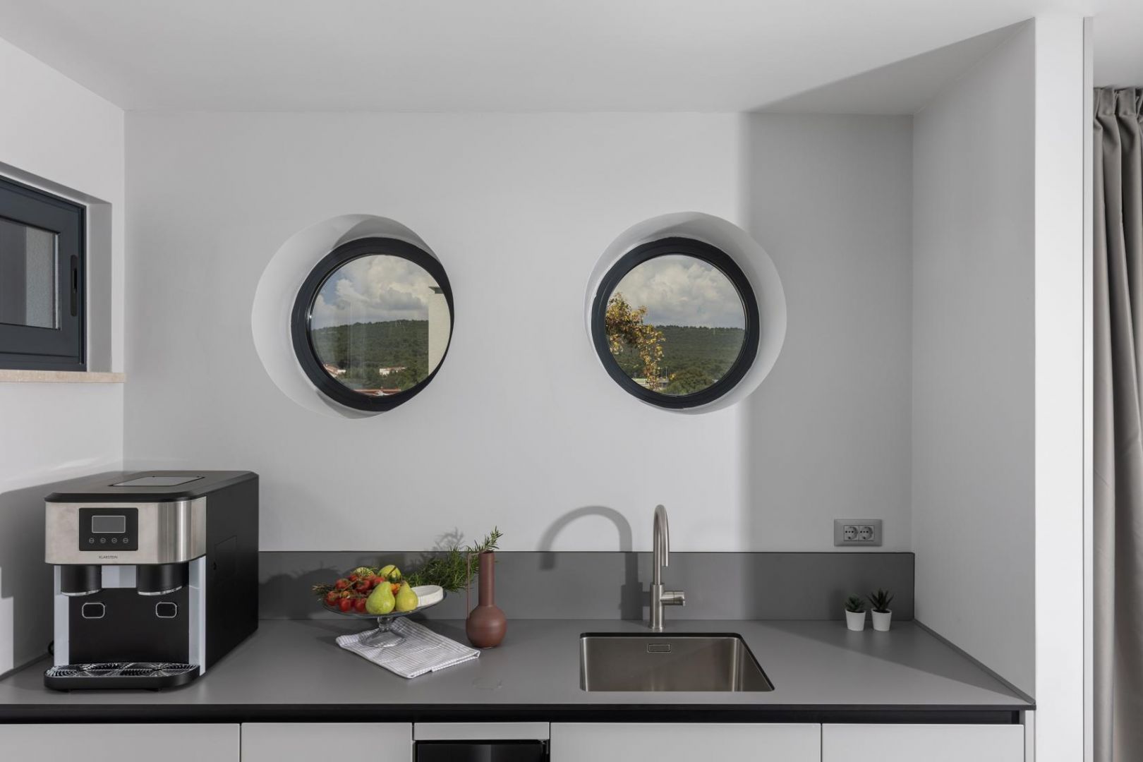 ZADAR, BIBINJE – Designer-Villa mit Pool in der Nähe von Zadar! Diese wunderschöne, modern gestaltete Villa befindet sich in einzigartiger Lage in Bibinje, nur 350 Meter vom Meer entfernt und in unmittelbarer Nähe der Marina Dalmacija – dem größten Yachthafen an der Adria. Die Villa bietet einen atemberaubenden Blick auf die imposanten Masten des Yachthafens und die grünen Hügel oberhalb von Bibinje, wodurch jeder Moment Ihres Aufenthalts ein besonderes mediterranes Flair erhält. Die Villa wurde von renommierten kroatischen Architekten und Designern mit viel Liebe zum Detail entworfen und eingerichtet, wobei besonderer Wert auf optimale Raumausnutzung und höchsten Wohnkomfort gelegt wurde. Jedes Detail wurde sorgfältig durchdacht, um Ihnen in der Villa ein rundum komfortables, entspannendes und luxuriöses Erlebnis zu bieten. Im Erdgeschoss befinden sich eine elegant eingerichtete Küche mit Essbereich, ein geräumiges Wohnzimmer mit Kamin und großer Eckcouch, ein Ankleidezimmer, ein Badezimmer und ein Gäste-WC. Vom Wohnzimmer gelangen Sie auf eine Sonnenterrasse mit beheiztem Pool, Sommerküche mit Grill und Essbereich im Freien. Auf der anderen Seite befindet sich eine private Sauna zum Entspannen. Im Obergeschoss befinden sich drei helle Schlafzimmer, jeweils mit eigenem Bad und Balkon, die einen herrlichen Blick auf das Meer und die umliegende Landschaft bieten. Das Dachgeschoss ist ganz dem Genuss gewidmet: Großzügige, teilweise überdachte Terrassen mit Whirlpool und ein komfortabler Loungebereich laden zum Entspannen am Abend bei Sonnenuntergang und Blick auf die Inselgruppe von Zadar ein. Bibinje ist ein malerisches dalmatinisches Städtchen, nur 8 km von Zadar entfernt. Es ist bekannt für sein authentisches Flair, sein vielfältiges Kultur- und Gastronomieangebot sowie zahlreiche Sommerveranstaltungen. Zahlreiche Tavernen, Fischrestaurants und moderne Bars runden das mediterrane Urlaubserlebnis ab. Die Nähe zu Zadar bietet zudem die Möglichkeit, eine Stadt mit außergewöhnlich reicher Geschichte, einem reichen kulturellen Erbe und modernen Annehmlichkeiten zu entdecken. Diese attraktive Immobilie unterliegt der Mehrwertsteuer, sodass beim Kauf keine Grunderwerbsteuer anfällt. Erfolgt der Kauf über eine mehrwertsteuerpflichtige juristische Person, besteht die Möglichkeit einer Mehrwertsteuerrückerstattung. Dies macht diese Villa zu einer besonders interessanten und rentablen Investition. Zusätzlich zu dieser Villa besteht die Möglichkeit, eine identische Villa direkt dahinter zu erwerben. Auch diese Villa ist ein Neubau in höchster Qualität, mit demselben erstklassigen Design und derselben umfangreichen Ausstattung. Sie ist ebenfalls mehrwertsteuerpflichtig. Diese einzigartige Gelegenheit ist ideal für alle, die mehr Platz für Familie und Freunde suchen, eine Kombination aus privater Unterkunft und touristischer Investition wünschen oder eine Luxusimmobilie für geschäftliche Zwecke benötigen. Für weitere Informationen und zur Vereinbarung eines Besichtigungstermins kontaktieren Sie uns bitte. Sorgfältig gestalteter Luxus in perfekter Lage erwartet Sie.