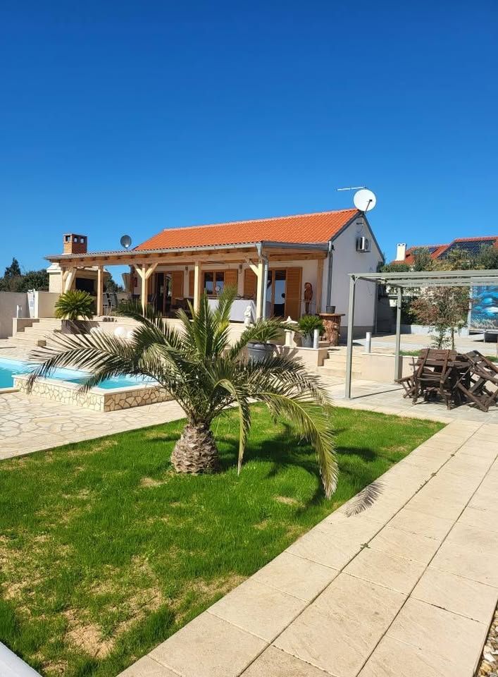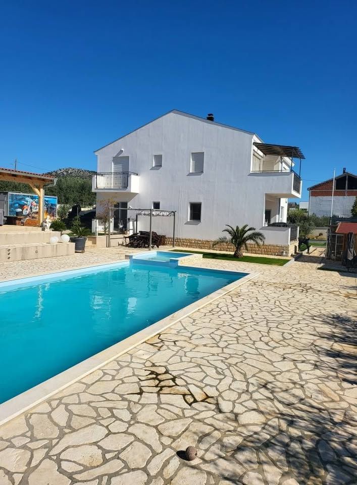 ZADAR, DONJA JAGODNJA – Haus mit Pool, Taverne und Garage inmitten der Natur! Mitten in der Natur, in Donja Jagodnja bei Kakma und unweit von Polača, erwartet Sie ein wunderschönes Haus, das Komfort, Ruhe und ein authentisches mediterranes Lebensgefühl vereint. Auf dem großzügigen Grundstück befindet sich eine 70 m² große Taverne mit überdachter Terrasse und Grill – ideal für gesellige Runden das ganze Jahr über. Ausgestattet mit Klimaanlage und Pelletofen. Angrenzend finden Sie eine 30 m² große Garage, drei überdachte Stellplätze und weitere 4–5 Außenstellplätze, die maximalen Komfort für Familie und Gäste bieten. Ein großer, 60 m² großer, beheizter Pool mit Whirlpool sorgt für puren Luxus. Der Garten ist mit Oliven-, Orangen-, Zitronen- und Mandarinenbäumen geschmückt, die eine einzigartige Atmosphäre der Ruhe und natürlichen Schönheit schaffen. Ein Geräteschuppen erleichtert die Gartenarbeit. Das Haus verfügt über fünf geräumige Schlafzimmer, jeweils mit eigenem Balkon, drei moderne Badezimmer und ein komfortables Wohnzimmer mit Balkon. Alle Räume sind klimatisiert, und für zusätzliche Wärme sorgt ein Kaminofen. Eine Sauna rundet das Wellness-Ambiente ab und macht dieses Anwesen zum perfekten Ort zum Entspannen. Das Haus wird komplett möbliert verkauft. Die Lage ist hervorragend: Biograd na Moru ist nur 5 Fahrminuten entfernt, Benkovac 15 Minuten, der Flughafen Zadar 20 Minuten und Zadar selbst 25 Minuten. Die Nähe zum Meer und allen wichtigen Einrichtungen macht diese Immobilie ideal zum Wohnen oder als touristische Kapitalanlage. Wenn Sie auf der Suche nach Ihrem eigenen privaten Paradies in einer naturnahen und ruhigen Umgebung sind, kontaktieren Sie uns gerne.