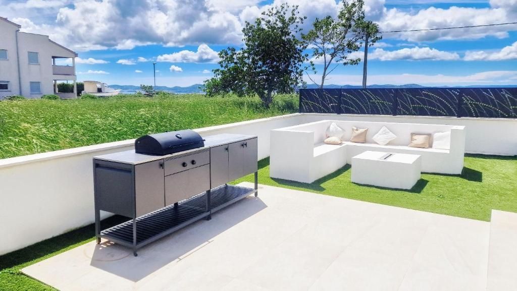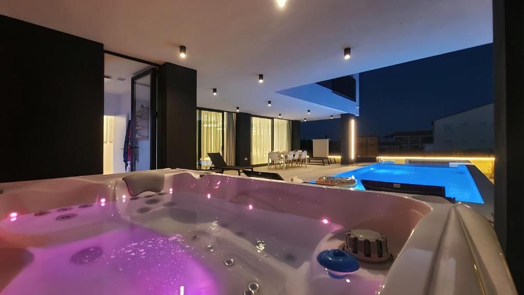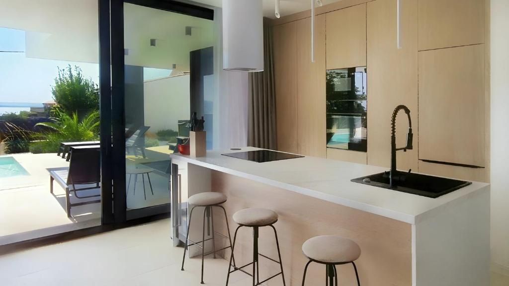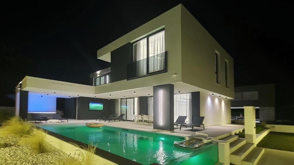 ZADAR, KOŽINO – Luxusvilla mit Meerblick! Fußbodenheizung, Wärmepumpe, Swimmingpool… In ruhiger Lage in Kožino steht eine moderne und luxuriös ausgestattete Villa zum Verkauf – ideal zum Wohnen, für den Urlaub oder als Kapitalanlage. Die 240 m² große Villa besticht durch hochwertige Bauweise, liebevoll ausgewählte Details und einen unverbauten Meerblick. Sie wird komplett möbliert verkauft und ist sofort bezugsfertig. Im Erdgeschoss befinden sich ein geräumiges Wohnzimmer mit angrenzender eleganter Küche und Essbereich, ein Badezimmer, ein Abstellraum, eine voll ausgestattete Sauna und eine große Terrasse mit Zugang zum Pool und zur Sonnenterrasse – der perfekte Ort, um Ruhe, Privatsphäre und Meerblick zu genießen. Im Obergeschoss befinden sich drei geräumige Schlafzimmer, jeweils mit eigenem Bad und Zugang zu einer großen Terrasse mit herrlichem Panoramablick. Das Hauptschlafzimmer verfügt zudem über einen begehbaren Kleiderschrank. Das Erdgeschoss ist mit hochwertigen Keramikfliesen ausgestattet, die Wohnräume mit dreilagigem, zwei Meter langem Parkettboden. Das Erdgeschoss und das erste Obergeschoss sind durch eine elegante Eisentreppe verbunden, die das moderne Interieur unterstreicht. Die Villa verfügt über Fußbodenheizung mit integrierter Wärmepumpe und Klimaanlage in allen Räumen. Drei Parkplätze stehen zur Verfügung. Der Strand ist in wenigen Autominuten oder in einem angenehmen 15-minütigen Spaziergang erreichbar. Kožino ist ein ruhiger, exklusiver Ort, nur wenige Kilometer von Zadar entfernt, einer der schönsten Städte an der Adria. Bekannt für seine luxuriösen Villen und gepflegten Strände, besitzt auch Luka Modrić Immobilien in Kožino. Die Nähe zu Zadar macht diese Lage zur perfekten Kombination aus Privatsphäre und der Nähe zu städtischen Annehmlichkeiten. Für weitere Informationen und eine Besichtigung der Villa kontaktieren Sie uns bitte – Ihr neues Zuhause mit Meerblick in Kožino erwartet Sie.