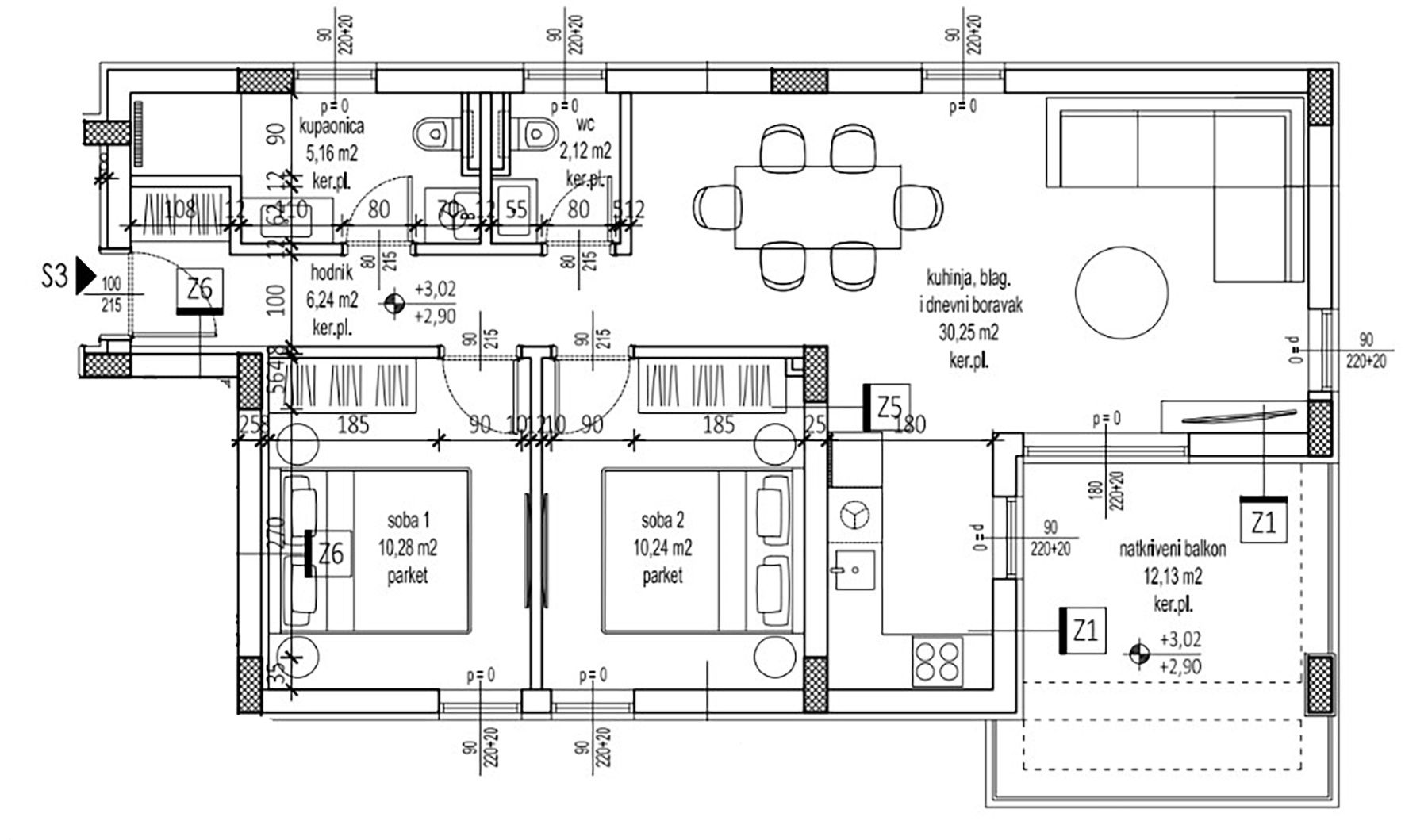 ZADAR, PETRČANE – Neubau in zweiter Reihe zum Meer! Punta Skala! Wohnung S3 In exklusiver, einzigartiger Lage befindet sich ein außergewöhnlicher Neubau in zweiter Reihe zum Meer! Zum Verkauf stehen vier hochwertige Wohnungen, jede mit zwei Parkplätzen, einer davon überdacht. Wohnung S3 befindet sich im ersten Obergeschoss im Südosten des Gebäudes und besteht aus: Küche, Ess- und Wohnzimmer | 30,25 m² Schlafzimmer 1 | 10,28 m² Schlafzimmer 2 | 10,24 m² Badezimmer | 5,16 m² Separates WC | 2,12 m² Flur | 6,24 m² Gesamtfläche der Wohnung: 64,29 m² Zur Immobilie gehören außerdem: überdachter Balkon | 12,13 m² Überdachter Parkplatz | 13,75 m² Nicht überdachter Parkplatz | 13,75 m² Die Gesamtfläche der Wohnung S2 inklusive Anbauten und Zubehör beträgt 103,92 m², die nutzbare Fläche 79,99 m². Der großzügige, offene Wohnbereich mit angrenzender Küche und Essbereich schafft einen modernen und hellen Raum, ideal zum Entspannen und geselligen Beisammensein. Eine große Glaswand sorgt für viel Tageslicht und Zugang zum überdachten Balkon. Zwei komfortable Schlafzimmer bieten ausreichend Platz für Doppelbetten. Für eine optimale Raumausnutzung empfiehlt sich der Einbau maßgefertigter Kleiderschränke. Der geräumige, überdachte Balkon ist der perfekte Ort, um die Natur zu genießen – ob beim Morgenkaffee, gemeinsamen Mahlzeiten oder entspannten Abenden, geschützt vor Sonne und Wind. Neben dem Badezimmer mit Dusche verfügt die Wohnung über ein separates WC. Alle Wohnungen sind mit Parkettboden und hochwertigen Keramikfliesen ausgestattet. Im Preis inbegriffen sind eine hochwertige italienische Küche und ein voll ausgestattetes Badezimmer. Die Bauarbeiten werden voraussichtlich Ende 2026 abgeschlossen sein. Option zum Erwerb einer 71,59 m² großen Dachterrasse mit Meerblick. Mit über 152 Sonnentagen im Jahr zählt Petrčane zu den sonnigsten Orten der Region Zadar. Im Sommer verwandelt sich das malerische Dorf in ein lebhaftes Touristenzentrum, das Besucher aus aller Welt anzieht. Die über 5 Kilometer lange Küste bietet eine Vielzahl gepflegter Strände – Kies-, Sand- und gepflasterte Strände – umgeben von duftenden Pinienwäldern, die natürlichen Schatten spenden. Zu den bekanntesten Stränden zählen Punta Radman, Žal, Punta Skala und Pinija. Jeder Strand besticht durch seinen eigenen Charme und bietet Annehmlichkeiten für Familien, Sportler und Ruhesuchende. In Punta Radman und Punta Skala befinden sich zwei Hotelanlagen mit einem vielfältigen Angebot an Unterkünften, Wellness- und Sporteinrichtungen. Sie zeichnen sich durch ihren hohen Servicestandard und ihre attraktive Lage direkt am Meer aus.
