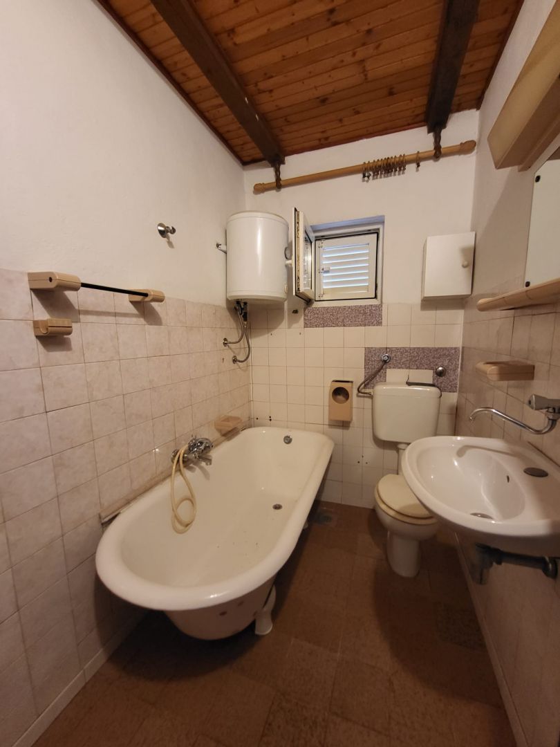 ZADAR, POSEDARJE – Traumhaftes Haus mit direktem Meerblick! Einmalige Gelegenheit! Haus mit traumhaftem Ausblick, nur 50 Meter vom Meer entfernt! In Posedarje, in ruhiger und idyllischer Lage, befindet sich dieses freistehende Haus mit großzügigem Garten – ideal für Urlaub oder als Wohnsitz. Terrasse und Wohnzimmer bieten einen atemberaubenden Meerblick, während der gepflegte Garten mit mediterranen Pflanzen für eine entspannende Atmosphäre sorgt. Das Haus besteht aus der Hauptwohnung im Hochparterre/ersten Obergeschoss und einem Keller. Die Wohnung verfügt über ein Wohnzimmer mit Küche, zwei Schlafzimmer und ein Badezimmer. Das Anwesen ist an Strom und Wasser angeschlossen und hat eine Klärgrube. Der Garten ist gepflegt, das Haus benötigt Renovierungsarbeiten. Ein Tausch gegen eine Immobilie in Zadar oder eine Wohnung in Zagreb ist möglich. Ein besonderer Vorteil dieses Hauses ist die Nähe zum Strand, die Ruhe und Privatsphäre bietet – ein seltener Luxus in Touristenorten. Mit einer kleinen Investition wird es Ihr perfektes Zuhause oder Ihre Wochenendoase am Meer!