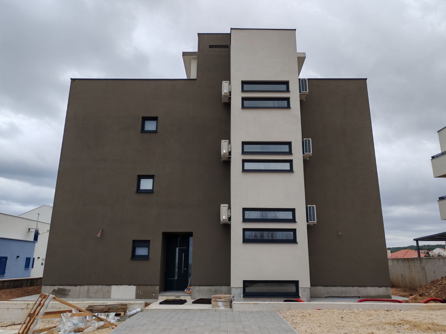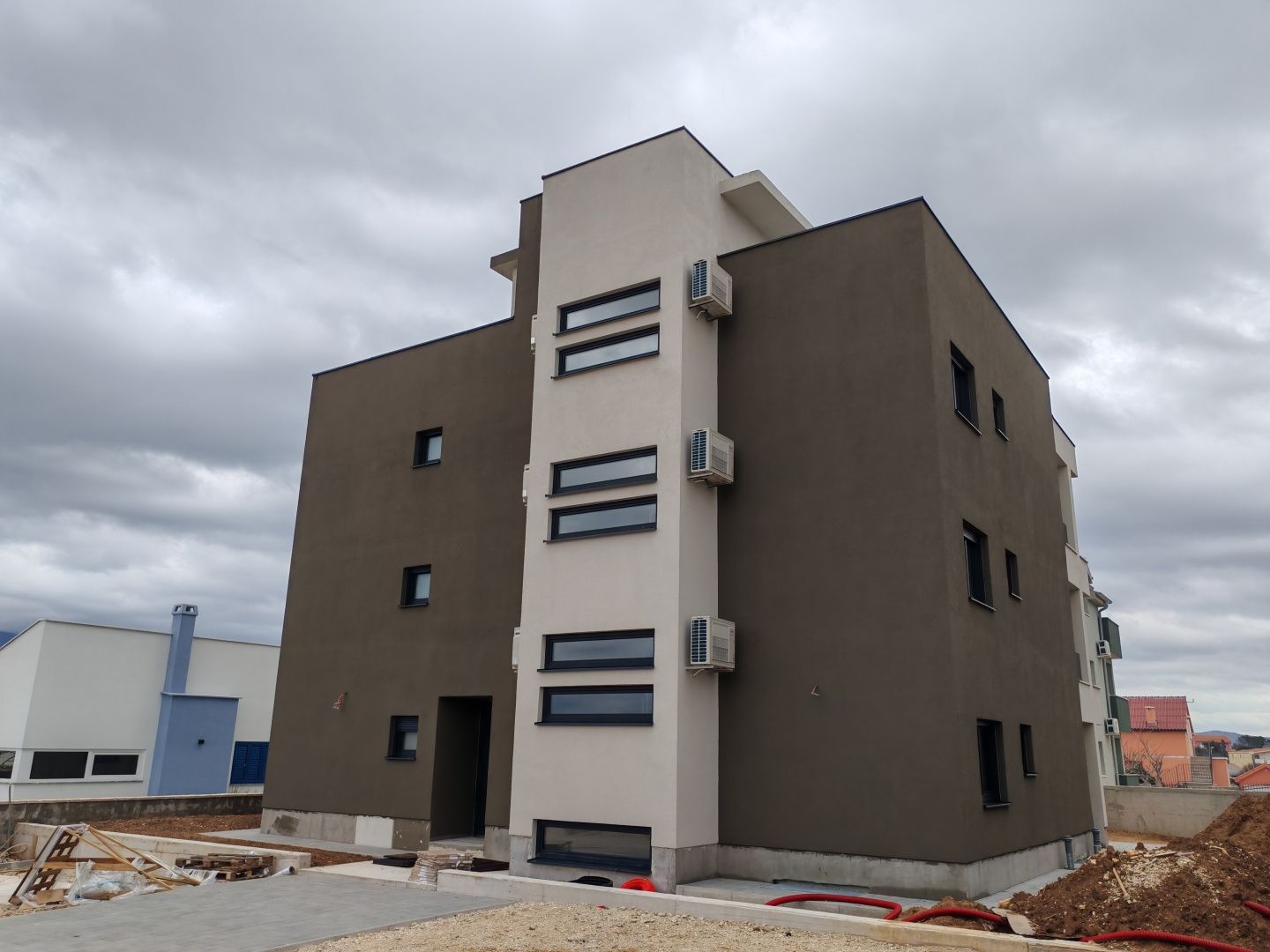 ZADAR, RAŽANAC – Neubau! Fußbodenheizung, Aufzug, Meerblick, Abstellraum...! S5. Zum Verkauf stehen hochwertige Wohnungen in einem Neubau im ruhigen und malerischen Städtchen Ražanac, ideal zum Wohnen, für den Urlaub oder als Kapitalanlage. Das Gebäude verfügt über insgesamt sechs modern gestaltete Wohnungen, jede mit eigenem Abstellraum im Untergeschoss und eigenem Parkplatz. Sie sind nur 320 Meter vom Kiesstrand mit Blick auf das Velebit-Gebirge entfernt. Das Gebäude ist mit einem Aufzug ausgestattet, und alle Wohnungen verfügen über Fußbodenheizung, die das ganze Jahr über eine angenehme Temperatur garantiert. Jede Einheit verfügt außerdem über eine eingebaute Klimaanlage in allen Zimmern, was zusätzlich zum Komfort beiträgt. Die Wohnung S5 im zweiten Stock bietet die perfekte Kombination aus Funktionalität und Komfort – sie besteht aus zwei Schlafzimmern, einem modernen Badezimmer, einem geräumigen Wohnzimmer mit Küche und Esszimmer, einer überdachten Terrasse und einer zusätzlichen Dachterrasse mit wunderschönem Meerblick. Die geplante Fertigstellung ist Ende 2025. Ražanac ist eine charmante dalmatinische Stadt, die Ruhe, Natur und den traditionellen mediterranen Geist vereint. Die Strände sind für ihre außergewöhnliche Sauberkeit und den spektakulären Blick auf das mächtige Velebit-Gebirge bekannt, der atemberaubende Landschaften bietet. Es ist ideal für alle, die dem Alltagsstress entfliehen und ein authentisches Küstenambiente genießen möchten. Für weitere Informationen oder eine Besichtigung kontaktieren Sie uns bitte – die Wohnungen sind bezugsfertig, und diese Gelegenheit bietet sich selten.