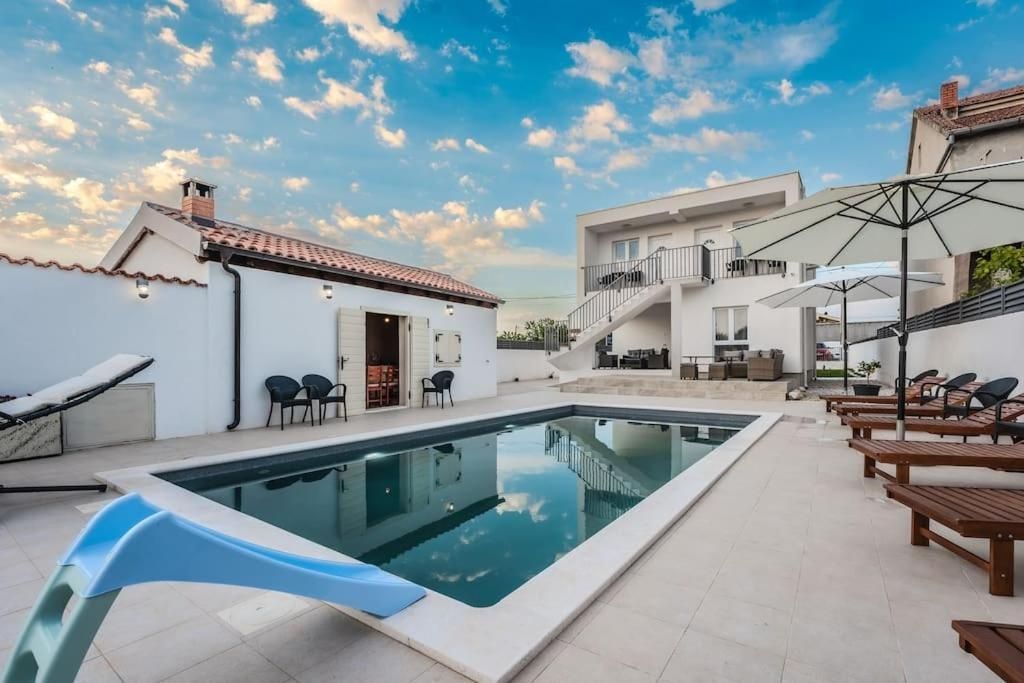 ZADAR, SUKOŠAN – Ferienhaus mit drei Wohneinheiten! Zum Verkauf steht ein wunderschönes Haus in Sukošan, nur 600 Meter vom Meer entfernt, in ruhiger und äußerst attraktiver Lage in unmittelbarer Nähe von Zadar. Das Anwesen befindet sich auf einem großzügigen Grundstück von 1.015 m², das Haus selbst bietet 56 m² Wohnfläche pro Etage und ist die ideale Kombination aus privatem Wohnsitz und Kapitalanlage. Im Erdgeschoss befindet sich ein komfortables Apartment mit zwei Schlafzimmern, einer Wohnküche und einem modernen Badezimmer. Eine Außentreppe führt in den ersten Stock mit zwei Studio-Apartments, jeweils mit eigenem Bad, die Gästen und Eigentümern absolute Privatsphäre bieten. Die Aufteilung des Anwesens eignet sich perfekt für die touristische Vermietung, aber auch für eine größere Familie, die separate Wohneinheiten wünscht. Angrenzend an das Haus befindet sich eine gemütliche Gaststätte mit zusätzlicher Küche, ideal zum geselligen Beisammensein und Verweilen das ganze Jahr über. Der großzügige und sorgfältig angelegte Garten bietet absolute Privatsphäre. Im Zentrum befindet sich ein Swimmingpool mit Liegestühlen, der mediterranes Flair versprüht. Zusätzlich bietet das ca. 350 m² große Baugrundstück die Möglichkeit, ein weiteres Gebäude zu errichten und so das Investitionspotenzial deutlich zu steigern. Die Villa ist als Tourismusobjekt klassifiziert und wird aktiv genutzt. Dank des etablierten Geschäftsbetriebs und der stabilen Einnahmen stellt diese Immobilie eine sichere und langfristig rentable Investition in einer der begehrtesten Lagen der Region Zadar dar. Diese Immobilie vereint auf perfekte Weise einen entspannten mediterranen Lebensstil, Privatsphäre und ein hohes Investitionspotenzial.