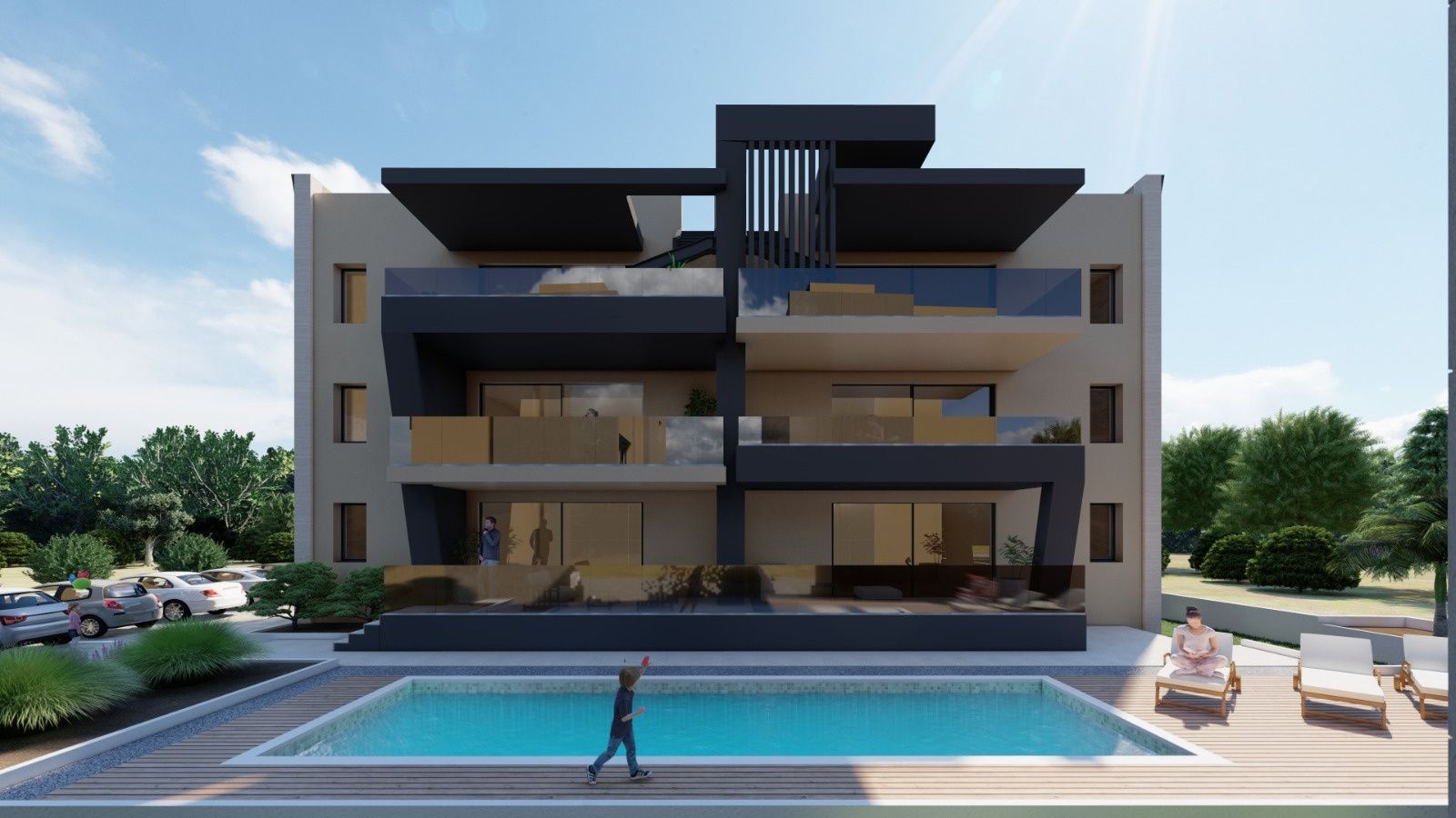 ZADAR, SUKOŠAN – Top-Penthouse! Fußbodenheizung, beheizter Pool, 120 Meter vom Meer entfernt, Dachterrasse...! S6 Zum Verkauf stehen neue, moderne Wohnungen im schönen Sukošan, in einem Gebäude mit insgesamt sechs Wohneinheiten – ideal für ein ruhiges Leben oder als Investition für Urlaub und Vermietung. Jede Wohnung verfügt über drei Schlafzimmer, zwei Badezimmer, ein gemütliches Wohnzimmer, Esszimmer und Küche sowie eine großzügige Terrasse zum Genießen der frischen Luft. Das Gebäude ist nur 120 Meter vom Strand entfernt – nur drei Gehminuten vom Meer entfernt. Im Erdgeschoss befindet sich ein gemeinschaftlich genutzter, beheizter Pool von 30 m², der das ganze Jahr über zum Entspannen einlädt. Rund um das Gebäude erstreckt sich ein grüner Garten, der Privatsphäre und Ruhe bietet. Jede Wohnung verfügt über einen eigenen Abstellraum, und die Penthouses bieten zusätzlich exklusive Dachterrassen mit Panoramablick. Die Wohnungen im ersten und zweiten Stock bieten ebenfalls einen wunderschönen Meerblick. Komfort und Bauqualität sind auf höchstem Niveau: Fußbodenheizung in der gesamten Wohnung, Klimaanlage in jedem Zimmer, elektrische Rollläden, Moskitonetze... Die Fertigstellung ist für Ende 2026 geplant. Da der Eigentümer eine juristische Person ist, zahlt der Käufer keine Grundsteuer. Sukošan ist eine charmante dalmatinische Stadt, bekannt für ihre Sandstrände, das klare Meer und die Yachthäfen – ideal für Liebhaber eines ruhigen Lebens am Meer. Sie liegt nur 10 Autominuten von Zadar entfernt – einer historischen Stadt mit reichem Kulturerbe, erstklassiger Gastronomie und einer ganzjährig lebendigen Atmosphäre. Für weitere Informationen und eine Besichtigung kontaktieren Sie uns gerne – finden Sie Ihr perfektes Zuhause am Meer in Sukošan!