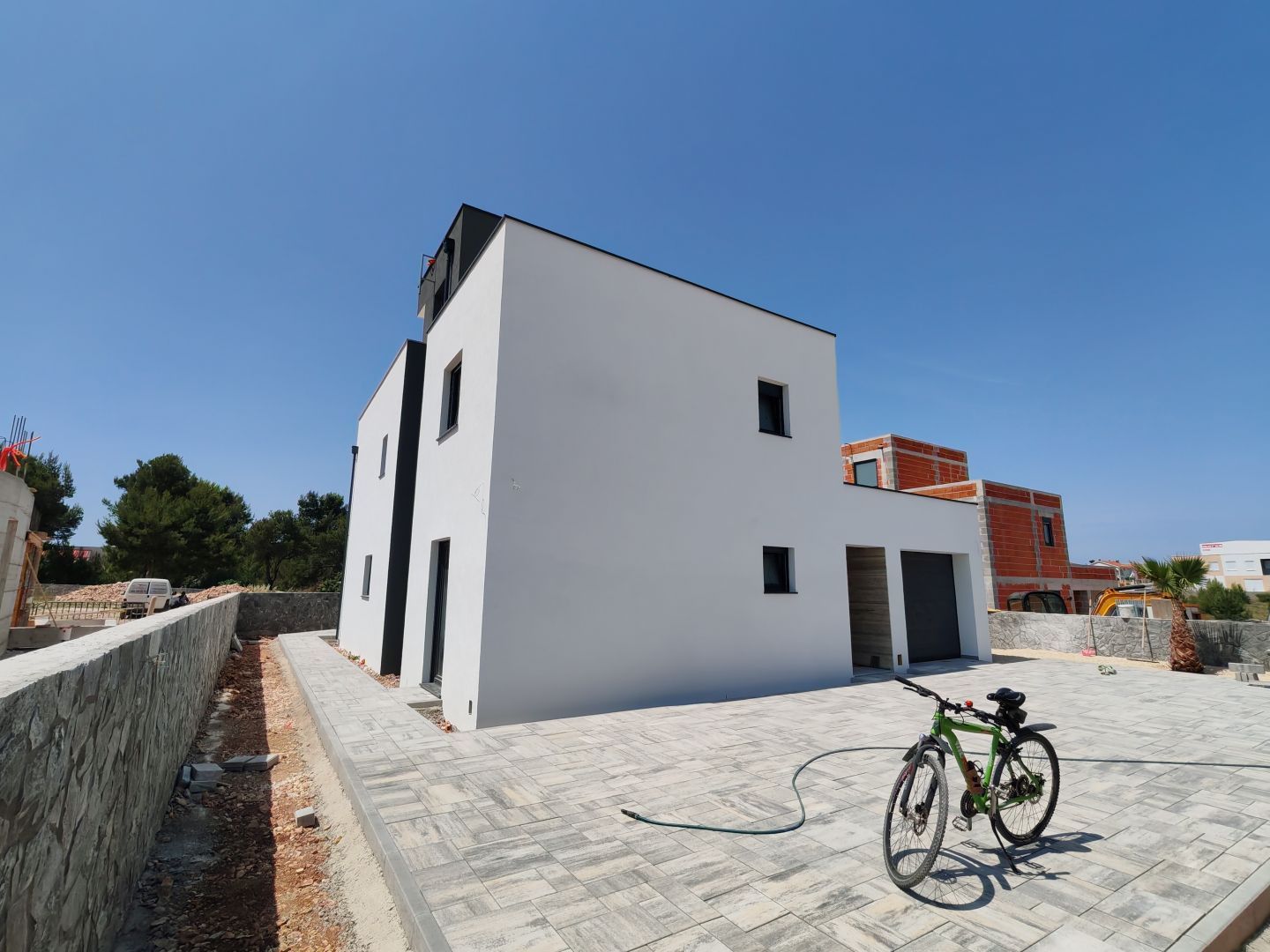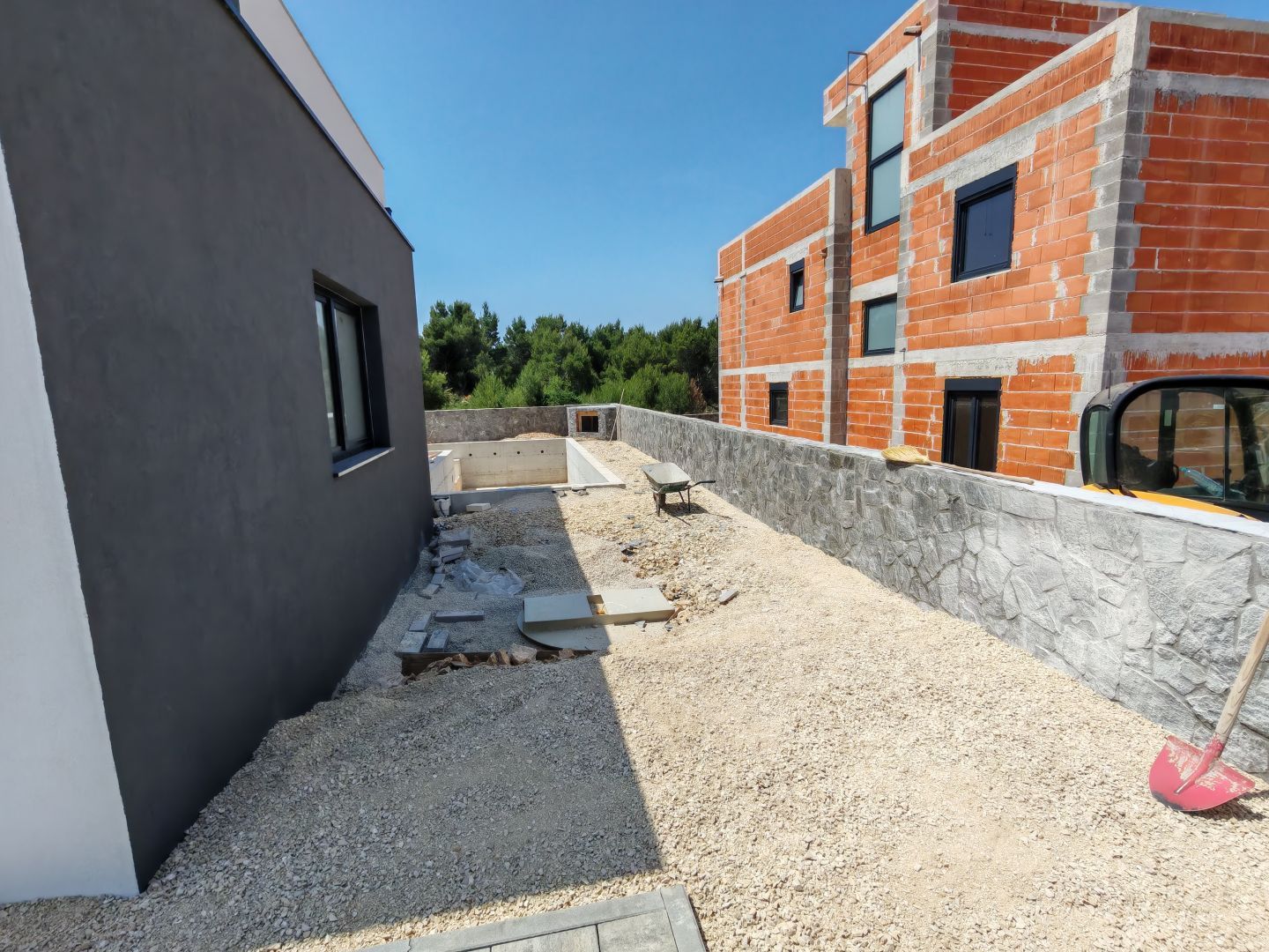 ZADAR, VRSI – Erstklassige Villa mit Swimmingpool! Garage, 4 Schlafzimmer, 4 Badezimmer...! A Ein Traumhaus, das die perfekte Mischung aus Luxus, Komfort und erstklassiger Bauqualität bietet! Über beeindruckende 279,64 m2 Bruttofläche erstreckt sich dieser exklusive Neubau, der selbst die anspruchsvollsten Wünsche künftiger Eigentümer erfüllen wird. Das geräumige und helle Wohnzimmer ist perfekt mit der modernen Küche und dem eleganten Esszimmer verbunden, wodurch ein Raum entsteht, der Wärme und Komfort ausstrahlt. Das Haus verfügt über vier geräumige Schlafzimmer, jedes mit eigenem Badezimmer, was ein Höchstmaß an Privatsphäre und Komfort gewährleistet. Ein Schlafzimmer und ein Badezimmer liegen im Erdgeschoss, die restlichen drei im Obergeschoss. In allen Bädern ist eine Fußbodenheizung installiert, während Klimaanlagen im Wohnzimmer und in den einzelnen Zimmern für die ideale Temperatur sorgen. Das Äußere des Hauses ist auf den ersten Blick atemberaubend – der große Swimmingpool im Hinterhof lädt zum Entspannen ein, während der Garten und der weitläufige Hof Ruhe und Privatsphäre bieten. Das Wohnzimmer öffnet sich auf eine wunderschöne Terrasse, die zum Pool führt, und eine zusätzliche Terrasse im ersten Stock und eine spektakuläre 65,77 m2 große Dachterrasse bieten einen Panoramablick auf Velebit und einen angenehmen Ort, um Sonnenuntergänge zu genießen. Das Haus verfügt neben der Garage über zwei weitere Stellplätze, für Besitzer von Elektroautos ist zudem eine Elektroladestation vorhanden. Die Bauqualität ist auf höchstem Niveau, mit hochwertigsten Materialien und erstklassigen rektifizierten Keramikfliesen. Elektrische Jalousien und Moskitonetze erhöhen den Komfort zusätzlich. Dieses Anwesen liegt nur 580 Meter vom Meer entfernt und bietet die perfekte Mischung aus modernem Design und ruhiger mediterraner Umgebung. Es befindet sich in Vrsi, einer wunderschönen dalmatinischen Stadt, die für ihre unberührte Natur, das kristallklare Meer und die entspannte Atmosphäre bekannt ist, ideal für ein ruhiges Familienleben oder einen luxuriösen Urlaub. Die geplante Baufertigstellung ist bis Sommer 2025. Lassen Sie sich die Chance nicht entgehen, Eigentümer dieses exklusiven Eigenheims zu werden – kontaktieren Sie uns noch heute!
