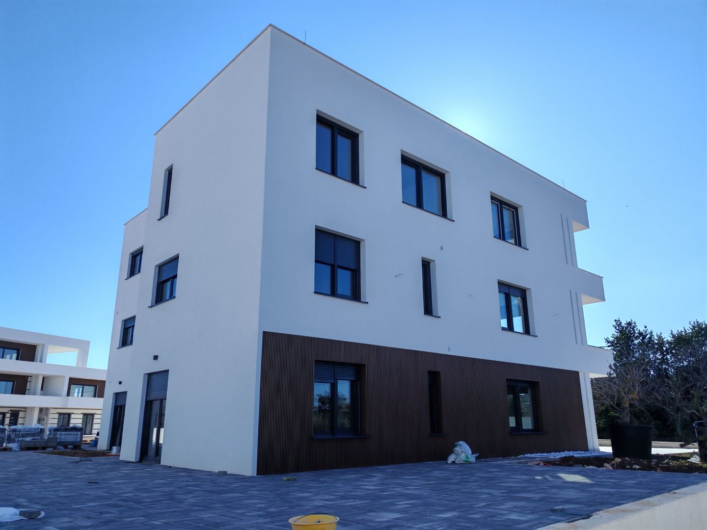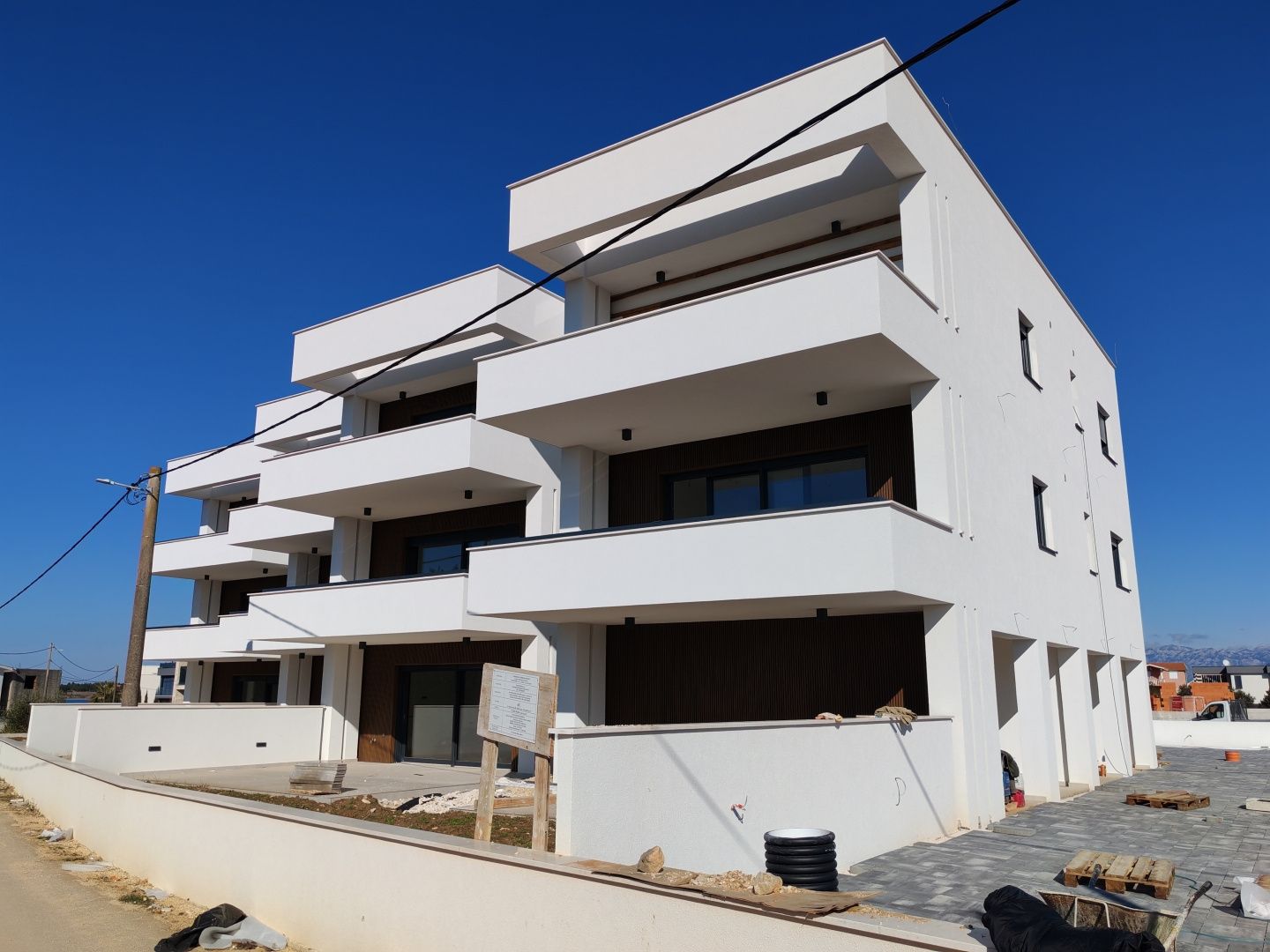 ZADAR, ZATON – Wohnung mit Meerblick, 95 Meter vom Meer entfernt! SA2. Nur 95 Meter vom Meer entfernt, im ruhigen Ort Zaton, entsteht ein modernes Projekt mit neun Luxuswohnungen in einer geschlossenen Anlage mit Rampe am Eingang. Die Siedlung ist als private Oase konzipiert und besteht aus fünf Gebäuden, in denen die Bewohner absolute Sicherheit und Privatsphäre genießen. Die Wohnungen in den oberen Stockwerken verfügen über geräumige Dachterrassen mit herrlichem Blick auf das Meer und die Inseln, während die Einheiten im Erdgeschoss über eigene Gärten verfügen. Es besteht auch die Möglichkeit, komplett möblierte Wohnungen gegen Aufpreis zu erwerben. Besonderes Augenmerk wurde auf die Innenarchitektur, moderne technologische Lösungen und hochwertige Materialien gelegt, um das Haus funktional, sicher und komfortabel zu machen. Das Smart-Home-System ermöglicht die Steuerung von Beleuchtung, Klimaanlage und Heizung. Die Konstruktion besteht aus einer Stahlbetonkonstruktion mit 10 cm Wärmedämmung. Aluminiumfenster und -türen mit elektrischen Rollläden, Multisplit-Klimaanlagen, Fußbodenheizung in den Bädern und im Wohnzimmer, Video-Gegensprechanlage, Überwachungskameras sowie Einbruch- und Brandschutztüren gehören zur Standardausstattung. Es wurden erstklassige Sanitärkeramik und Bodenbeläge namhafter Hersteller verwendet. Die Fertigstellung der Arbeiten ist für Ende 2025 geplant. Die Wohnung SA2 befindet sich im ersten Stock und besteht aus zwei Schlafzimmern, zwei Bädern, einem Abstellraum und einem geräumigen Wohnbereich mit Küche und Esszimmer. Ein besonderer Pluspunkt ist der überdachte Balkon mit Meerblick. Zaton ist eine ruhige dalmatinische Stadt, die für ihr kristallklares Meer, ihre Kiesstrände und ihre entspannte mediterrane Atmosphäre bekannt ist. In der Nähe befindet sich Zadar – eine Stadt reich an Geschichte, kulturellen Sehenswürdigkeiten und erstklassigen Restaurants, ein ideales Reiseziel zum Leben und für den Urlaub. Der Verkäufer ist eine juristische Person, der Käufer zahlt keine Grunderwerbsteuer. Für alle weiteren Informationen und Besichtigungstermine kontaktieren Sie uns bitte.