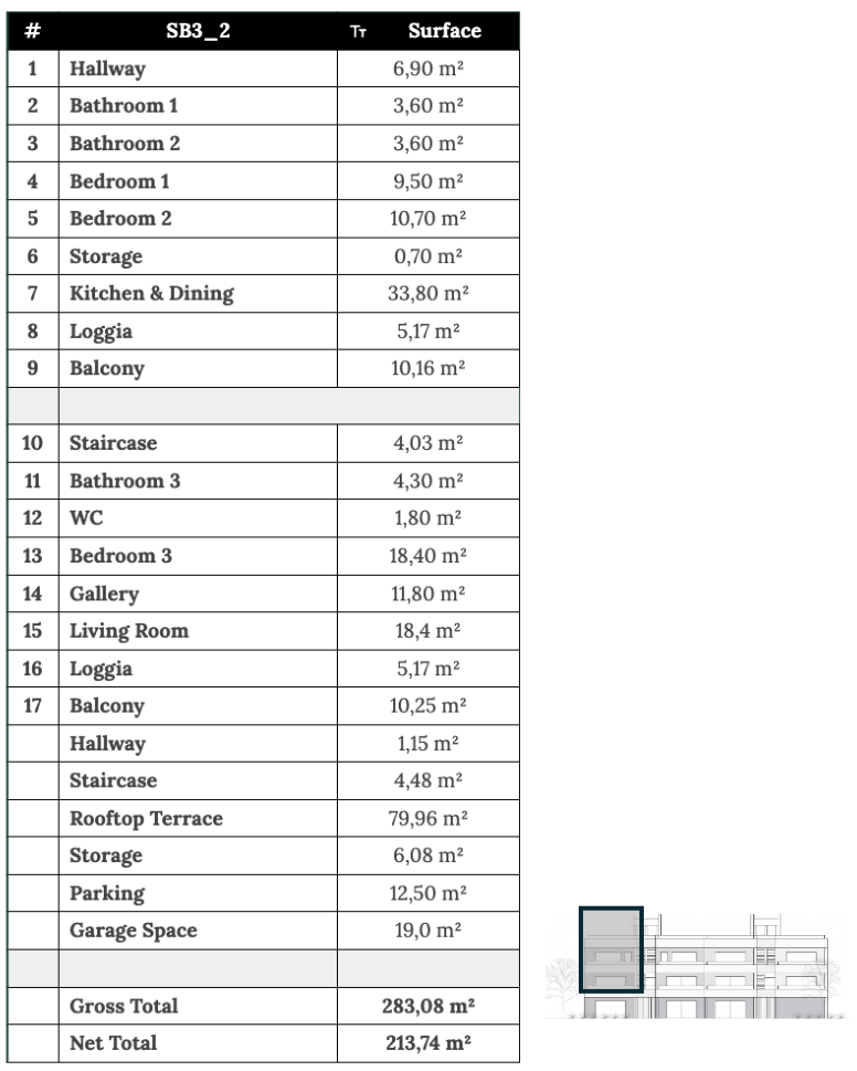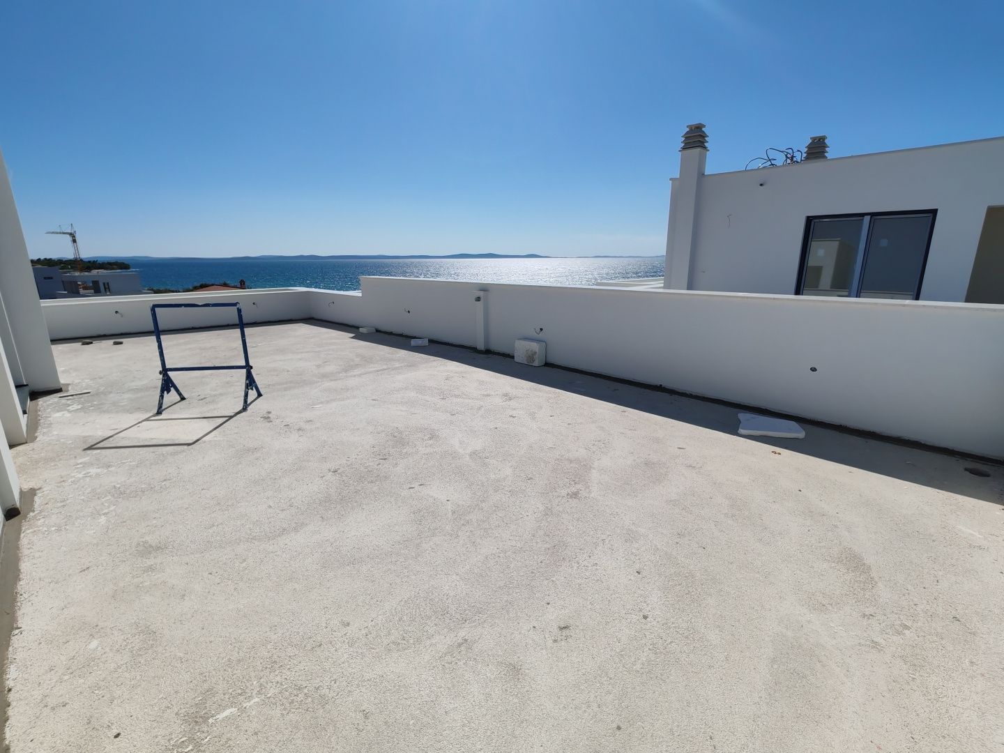ZADAR, ZATON – Zweistöckiges Penthouse mit wunderschöner Aussicht, 95 Meter vom Meer entfernt! SB3. Nur 95 Meter vom Meer entfernt, in der ruhigen Stadt Zaton, entsteht ein modernes Projekt mit neun Luxusapartments in einer geschlossenen Anlage mit Rampe am Eingang. Die Siedlung ist als private Oase konzipiert und besteht aus fünf Gebäuden, in denen die Bewohner absolute Sicherheit und Privatsphäre genießen. Die Apartments in den oberen Stockwerken verfügen über geräumige Dachterrassen mit herrlichem Blick auf das Meer und die Inseln, während die Einheiten im Erdgeschoss über eigene Gärten verfügen. Es besteht auch die Möglichkeit, gegen eine zusätzliche Gebühr komplett möblierte Apartments zu erwerben. Besonderes Augenmerk wurde auf die Innenarchitektur, moderne technologische Lösungen und hochwertige Materialien gelegt, um das Haus funktional, sicher und komfortabel zu machen. Das Smart-Home-System ermöglicht die Steuerung von Beleuchtung, Klimaanlage und Heizung. Die Konstruktion besteht aus einer Stahlbetonkonstruktion mit 10 cm Wärmedämmung. Aluminiumfenster mit elektrischen Rollläden, Multisplit-Klimaanlagen, Fußbodenheizung in den Bädern und im Wohnzimmer, Video-Gegensprechanlage, Überwachungskameras sowie Einbruch- und Brandschutztüren gehören zur Standardausstattung. Es wurden erstklassige Sanitärkeramik und Bodenbeläge namhafter Hersteller verwendet. Die Fertigstellung der Arbeiten ist für Ende 2025 geplant. Das zweistöckige Penthouse SB3 befindet sich im zweiten Stock und besteht aus zwei Schlafzimmern, drei Bädern, einem Abstellraum und einem geräumigen Wohnbereich mit Küche und Esszimmer. Sein besonderer Wert liegt auf der Dachterrasse mit herrlichem Meerblick und einem Stellplatz in der Garage. Es besteht die Möglichkeit, den Grundriss zu ändern und ein weiteres Schlafzimmer hinzuzufügen. In diesem Fall würde der Preis 1.284.000 € betragen. Zaton ist eine ruhige dalmatinische Stadt, die für ihr kristallklares Meer, ihre Kieselstrände und ihre entspannte mediterrane Atmosphäre bekannt ist. Zadar liegt in der Nähe – eine Stadt reich an Geschichte, kulturellen Sehenswürdigkeiten und erstklassigen Restaurants, ein ideales Reiseziel zum Leben und für den Urlaub. Der Verkäufer ist eine juristische Person und der Käufer zahlt keine Grundsteuer. Für weitere Informationen und zur Vereinbarung eines Besichtigungstermins kontaktieren Sie uns bitte.