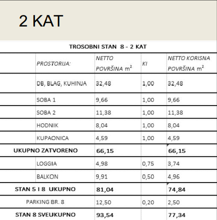 ZAGREB, SESVETE – Moderne Dreizimmerwohnung mit privatem Garten, Neubau im Erdgeschoss Zum Verkauf steht eine moderne Dreizimmerwohnung mit privatem Garten im Erdgeschoss eines neuen Wohngebäudes in Sesvetski Kraljevec. Die Wohnung befindet sich in einem Gebäude mit nur zehn Wohneinheiten, was Ruhe und Privatsphäre garantiert, und die Fertigstellung des Baus ist für Mai 2026 geplant. Die gesamte Verkaufsfläche der Wohnung beträgt 80,55 m², davon eine Innenfläche von 64,07 m², eine geräumige Loggia von 4,70 m², ein externer nicht überdachter Parkplatz von 12,50 m² und ein großer privater Garten von 104,50 m², der den perfekten Raum zum Entspannen und für gesellige Stunden im Freien bietet. Die Wohnung ist nach Süden, Westen und Norden ausgerichtet und besteht aus einer Eingangshalle, einem Wohnzimmer mit Esszimmer und Küche sowie zwei Schlafzimmern und einem Badezimmer. Es wurden PVC-Fenster mit Dreifachverglasung und elektrischen Aluminium-Rollläden eingebaut. Die Fassade ist hochwertig isoliert und modern verarbeitet, um optimale Energieeffizienz zu gewährleisten. Eine Fußbodenheizung mit Vaillant-Wärmepumpe sorgt für eine angenehme Temperatur, und jeder Raum verfügt über einen separaten Thermostat für eine präzise Regelung. Das Badezimmer ist mit Sanitärelementen ausgestattet, und die Wohnung ist für den Einbau einer Klimaanlage vorbereitet. Die Eingangstür ist einbruchsicher, während die Innentüren aus hochwertigem Holz mit modernen Lösungen zur Schall- und Wärmedämmung bestehen. Das Gebäude ist mit einem Schindler-Aufzug ausgestattet, und jeder Parkplatz verfügt über einen Anschluss zum Laden von Elektrofahrzeugen. Externe Heiz- und Kühlgeräte befinden sich auf dem Dach und sorgen für eine saubere und ruhige Umgebung. Die Lage ist ausgezeichnet – ein Kindergarten und eine Grundschule befinden sich etwa 800 Meter entfernt, während größere Einkaufszentren im Umkreis von 500 Metern liegen. Das Zentrum von Sesvete ist 4 km entfernt, und die Ausfahrt zur Autobahn Zagreb – Varaždin ist nur 2,5 km entfernt, was eine schnelle Anbindung an den Rest der Stadt und der Region ermöglicht. Diese Wohnung bietet eine ideale Gelegenheit für ein hochwertiges und komfortables Leben in einer ruhigen Umgebung mit allen notwendigen Annehmlichkeiten in unmittelbarer Nähe. berechnet.